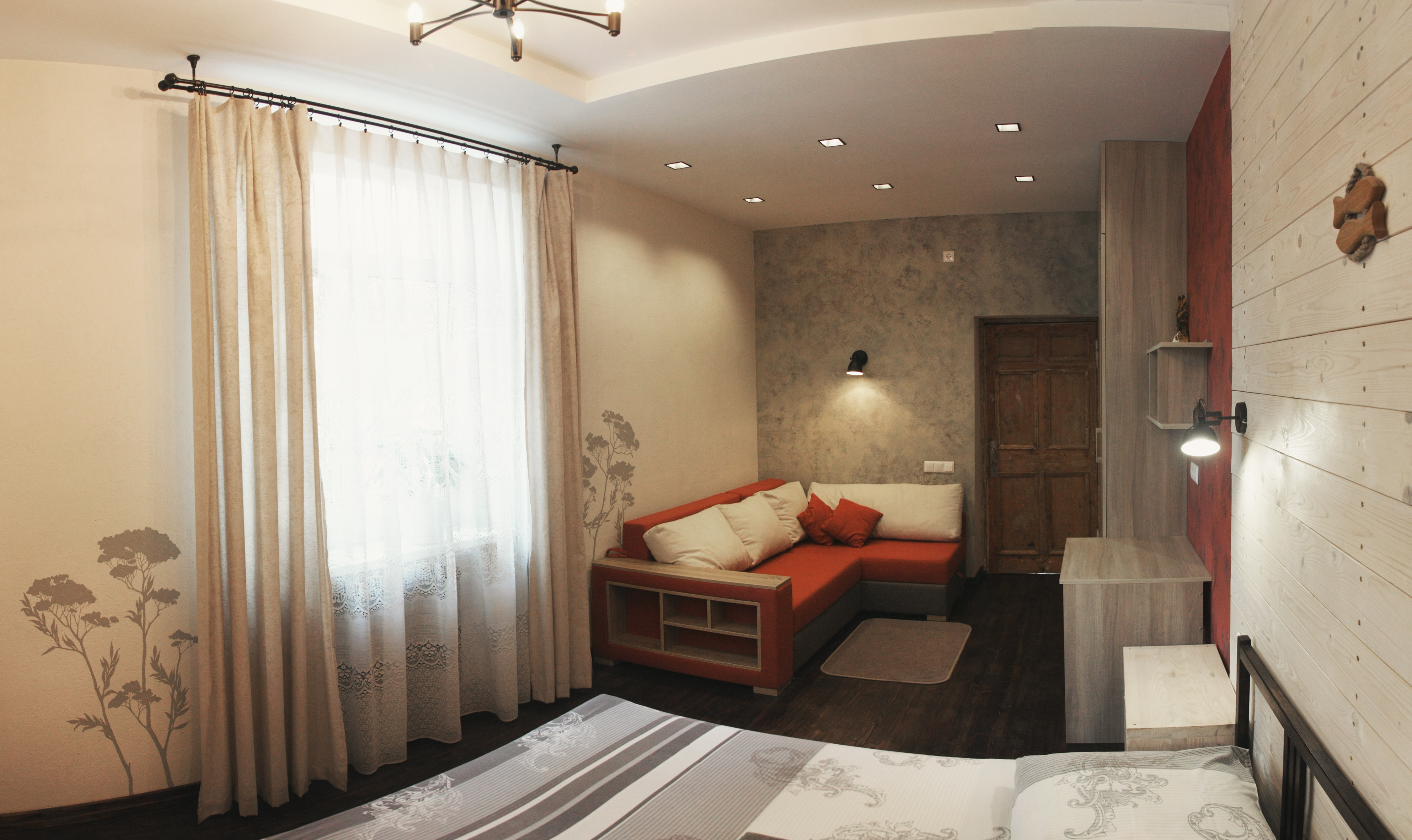 В шаговой доступности от апартаментов расположены парк Горького, парк Янки Купалы, Немига, Комаровский рынок, Оперный театр и ряд других достопримечательностей. За небольшую дополнительную плату гости могут разместиться в апартаментах вместе с домашним питомцем. Для автопутешественников имеется бесплатная парковка у самых окон. Также бесплатно предоставляются документы о проживании. Персонал апартаментов говорит на английском, русском и белорусском языках, последнее особенно поможет тем, кто желает полностью окунуться в быт и культуру Беларуси. В квартире имеется кондиционер (охлаждение/обогрев), бойлер, смарт тв (55'), газовая плита, холодильник, микроволновка, пылесос, фен, утюг. Окна оборудованы москитными сетками. Гостям предоставляются постельное белье и полотенца.