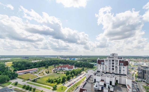 Просторная современная светлая квартира с отдельной спальней и студией, расположенная на 22этаже нового дома, с высоты птичьего полета открывается завораживающий вид из окна, где можно любоваться прекрасными закатами и восходами.