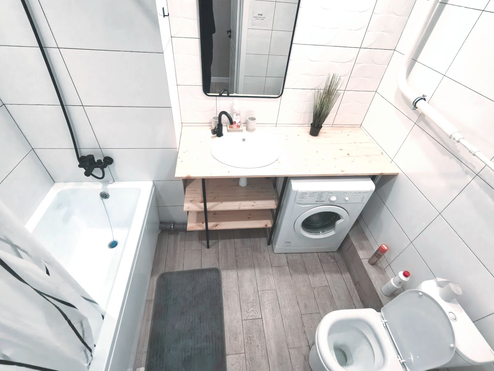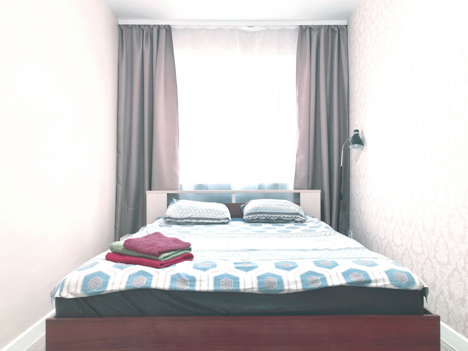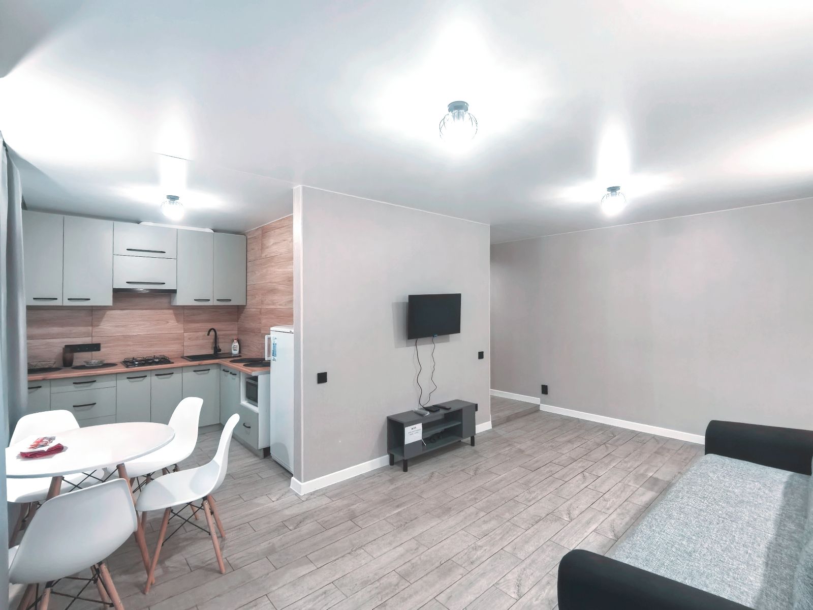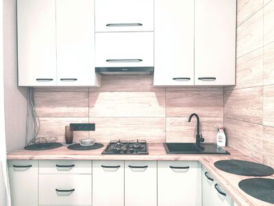 ЖК ТВ, вай-фай, холодильник, СВЧ, стиральная, машина, фен, утюг, гладильная доска, столовые приборы, постельное белье, полотенца, чай, кофе, сахар, соль и тд).