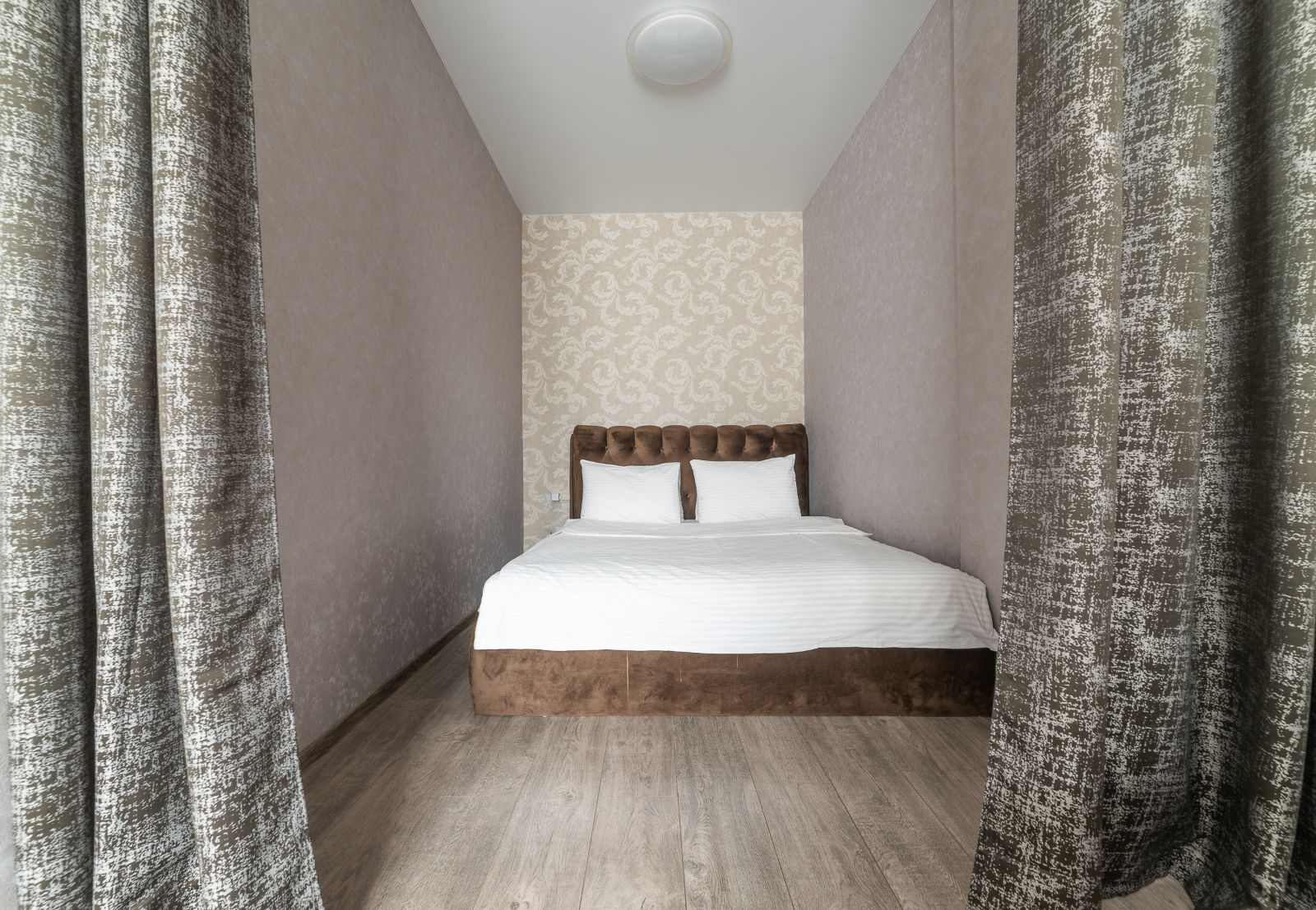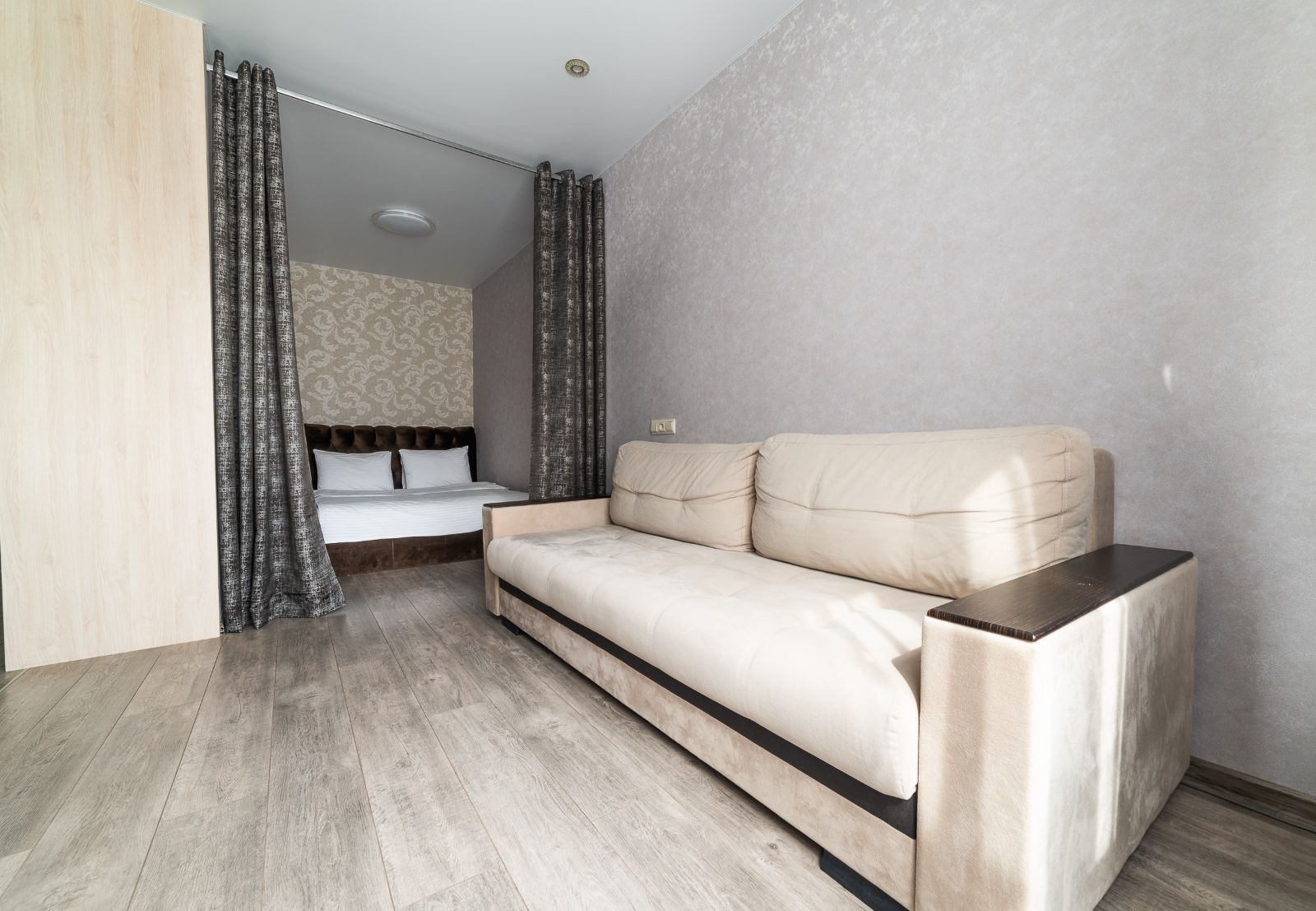 • удобная двуспальная кровать и диван с качественным постельным бельём