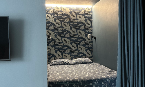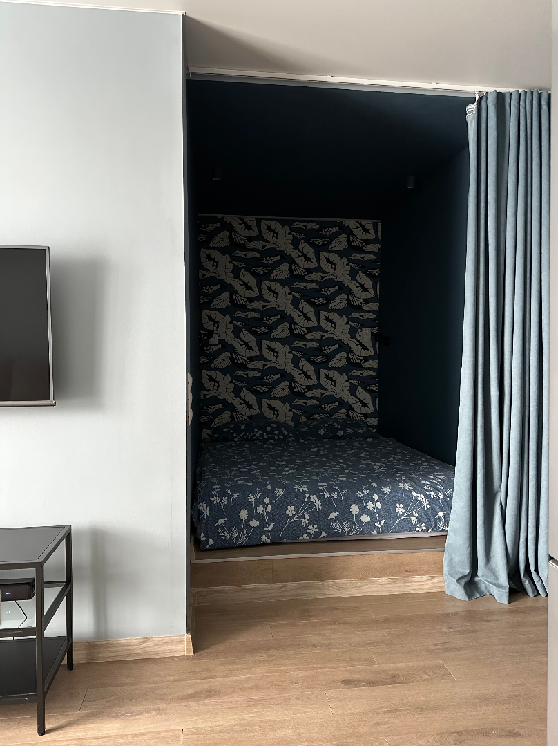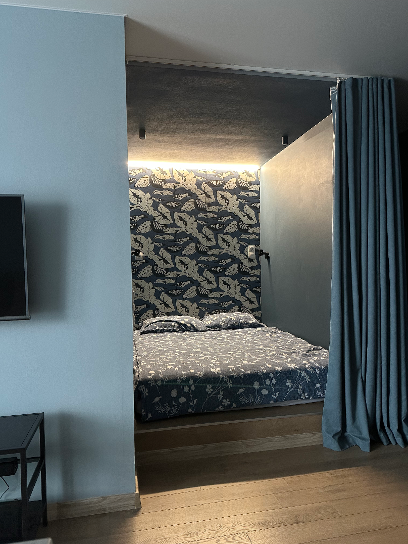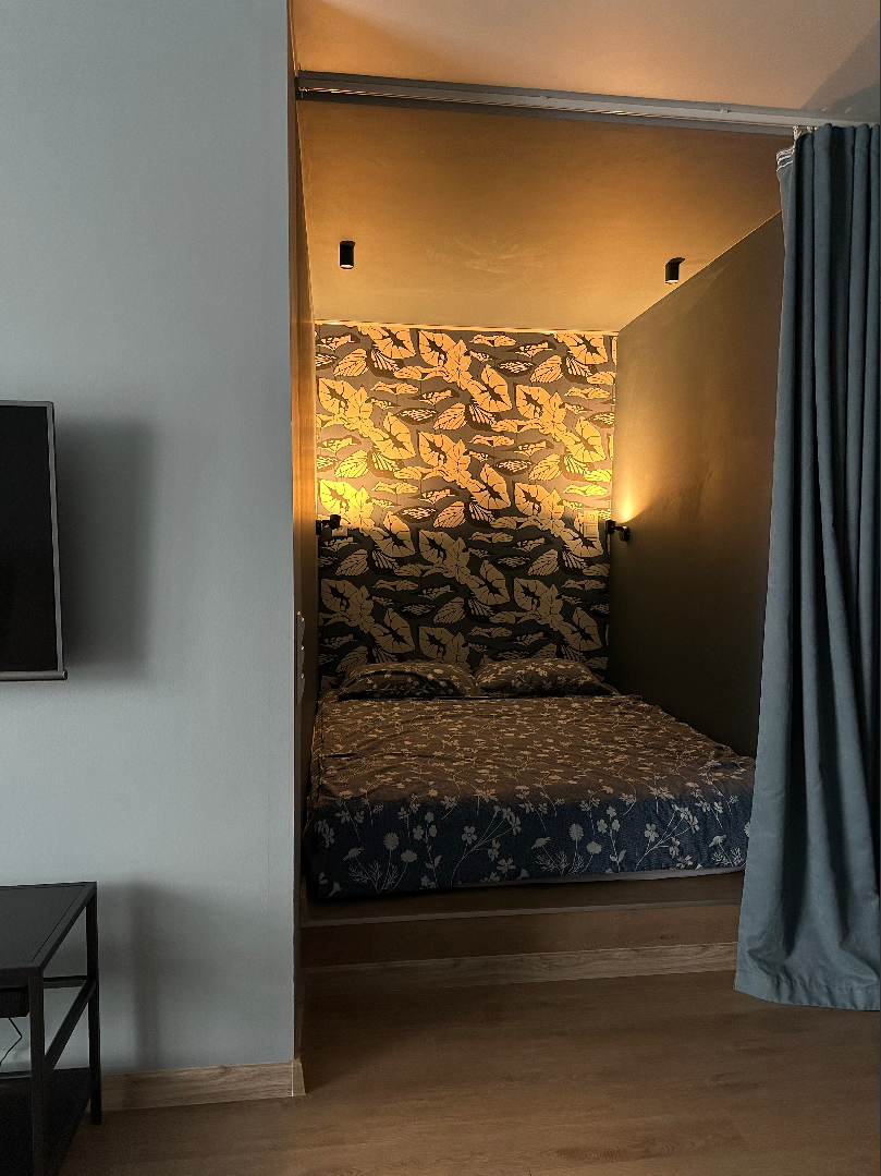 Мы создали максимально комфортные условия для размещения одного человека, либо для пары, либо для 1 взрослого с ребенком от 7 лет: большое спальное место (160 см, ортопедический матрас Аскона премиум класса), диван (не раскладывается) напротив телевизора со smartTV, высокоскоростной wi-fi, вся бытовая техника, кофемашина Delonghi, кондиционер LG с минимальным шумом работы. Ванная комната с душевой кабиной, стиральной машиной, бойлером (на время отключения горячей воды). На окнах плотные шторы для любителей спать в темноте.