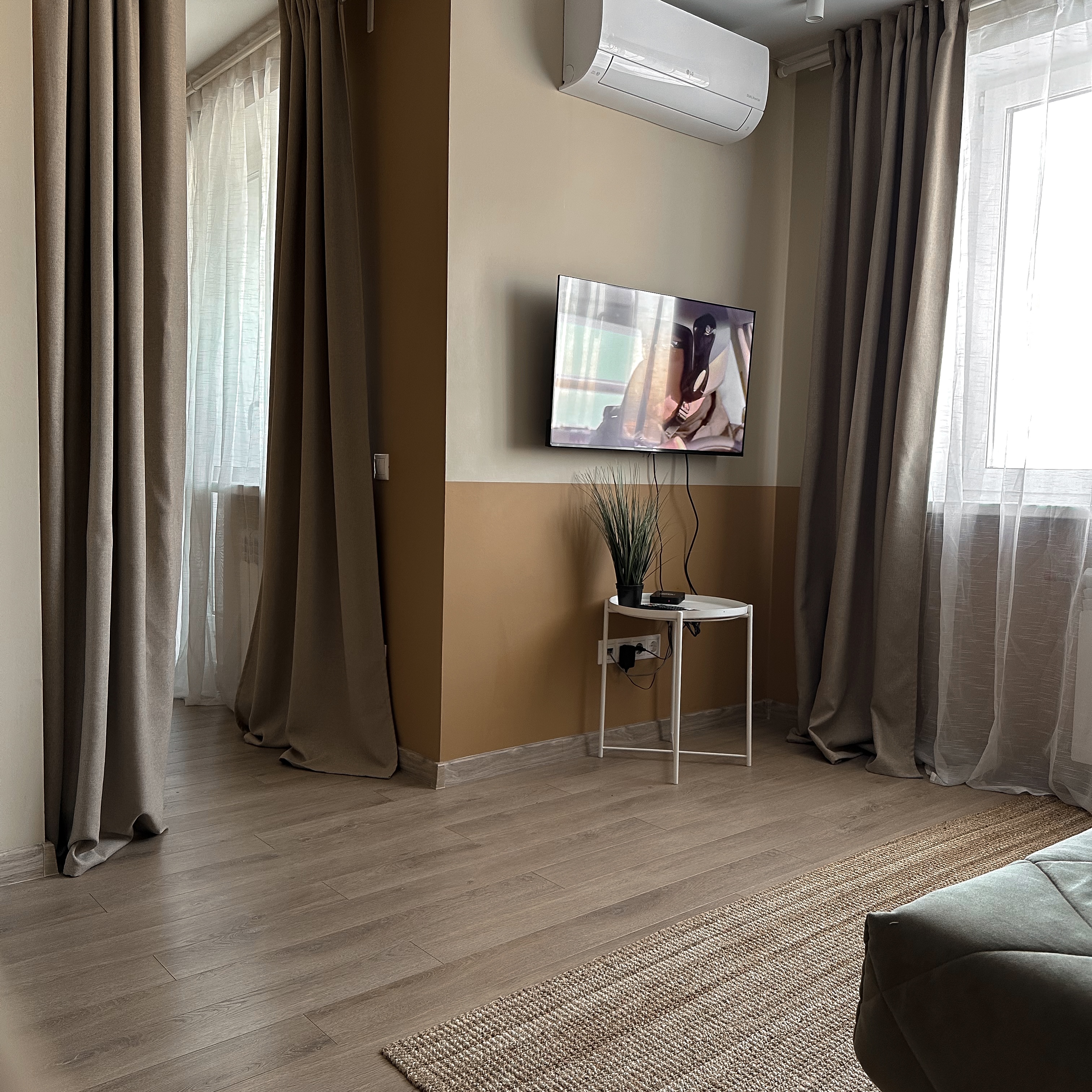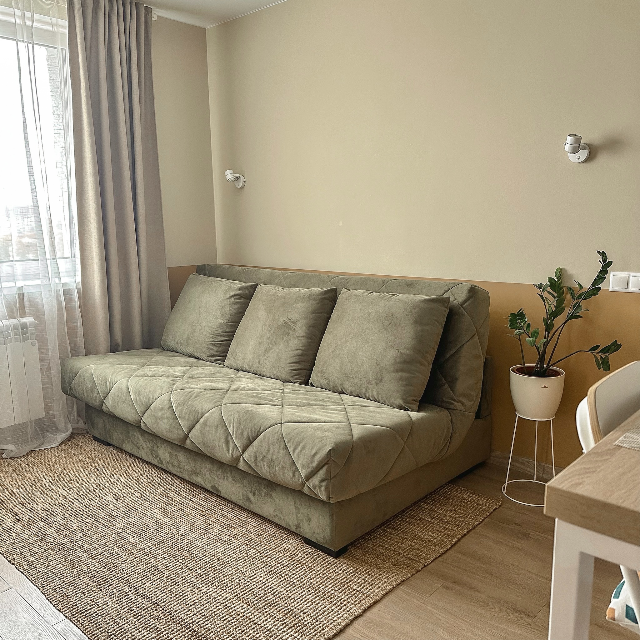 •Мы создали максимально комфортные условия для вашего размещения, спальных мест 2+1: двуспальная кровать (160 см, ортопедический матрас Аскона) и раскладной диван напротив телевизора со smartTV, высокоскоростной wi-fi, вся бытовая техника, кофемашина Delonghi, кондиционер LG с минимальным шумом работы. На окнах плотные шторы для любителей спать в темноте.