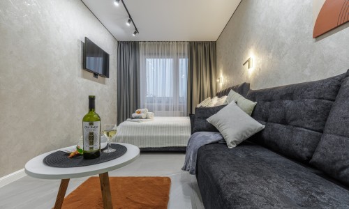 Эти апартаменты расположены в новом элитном комплексе "Купальский". Каждая деталь в квартире продумана до мелочей.