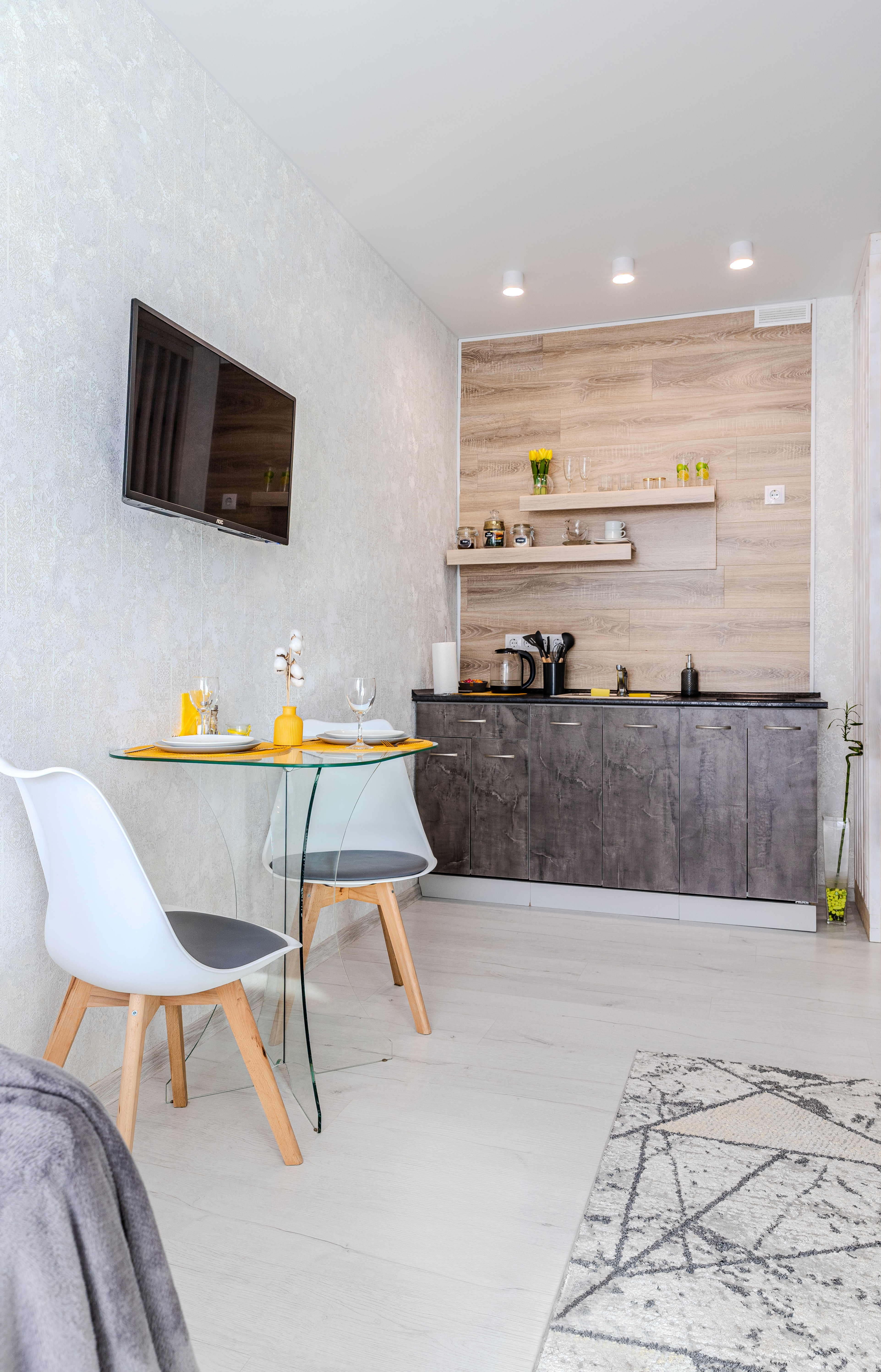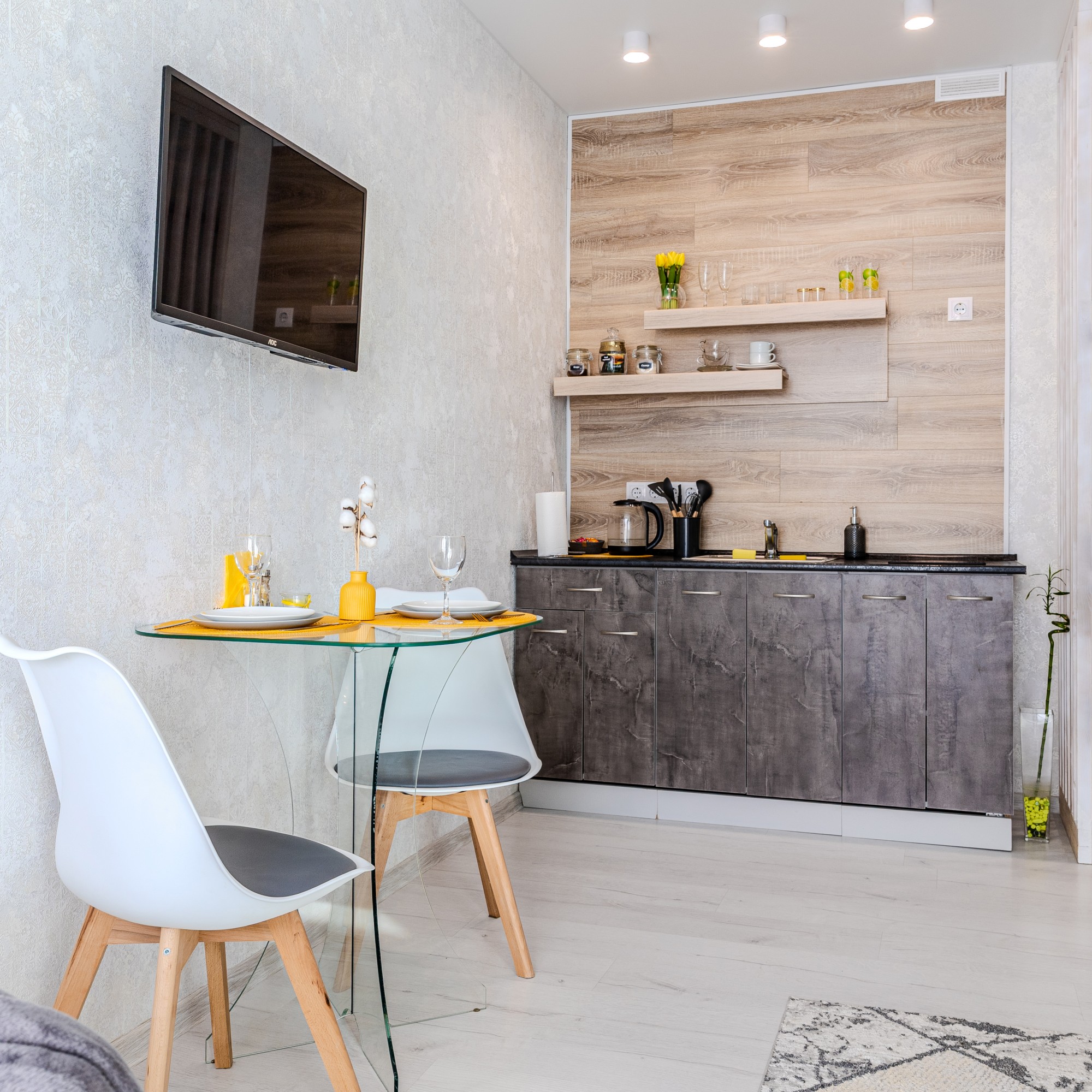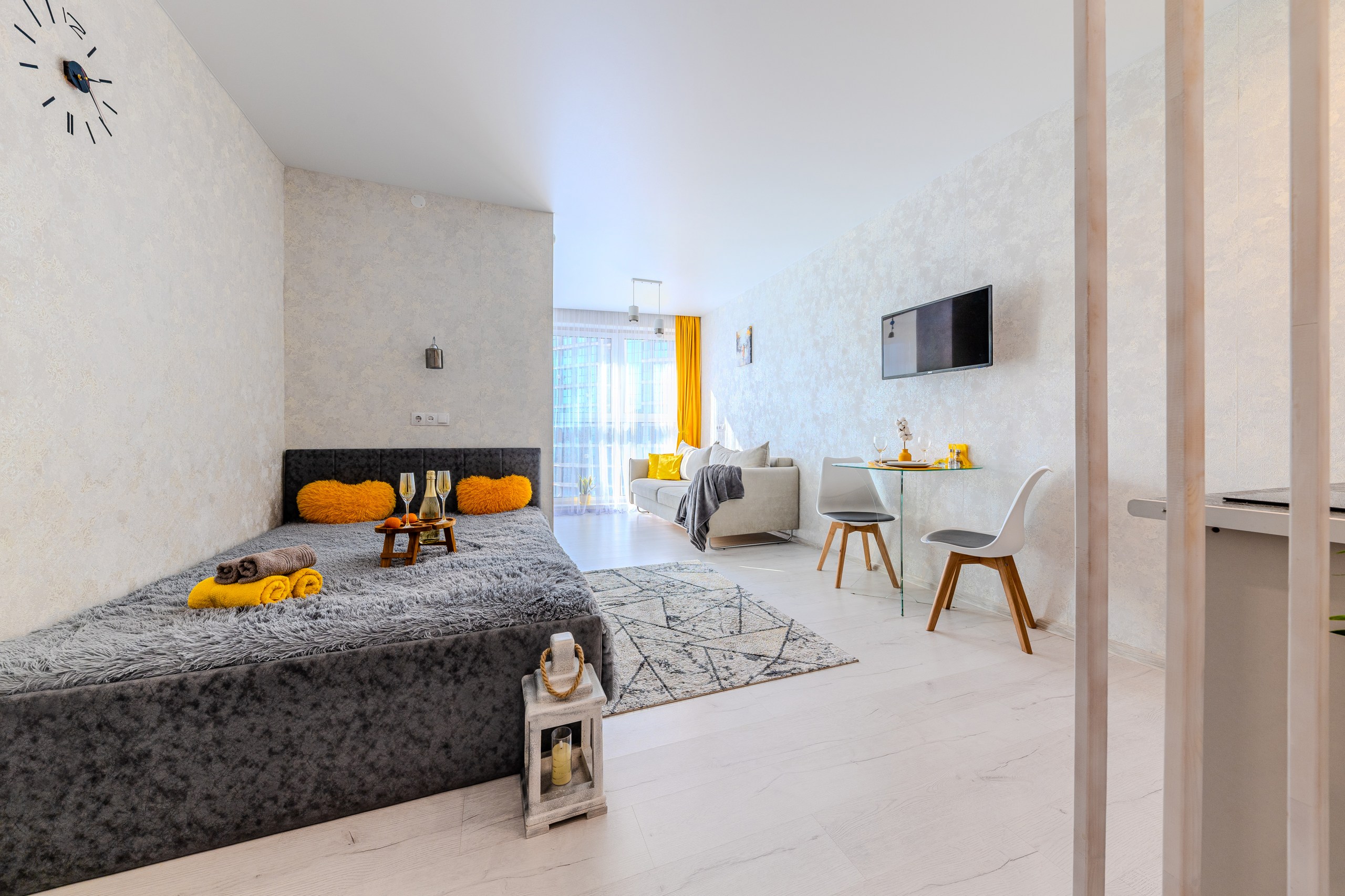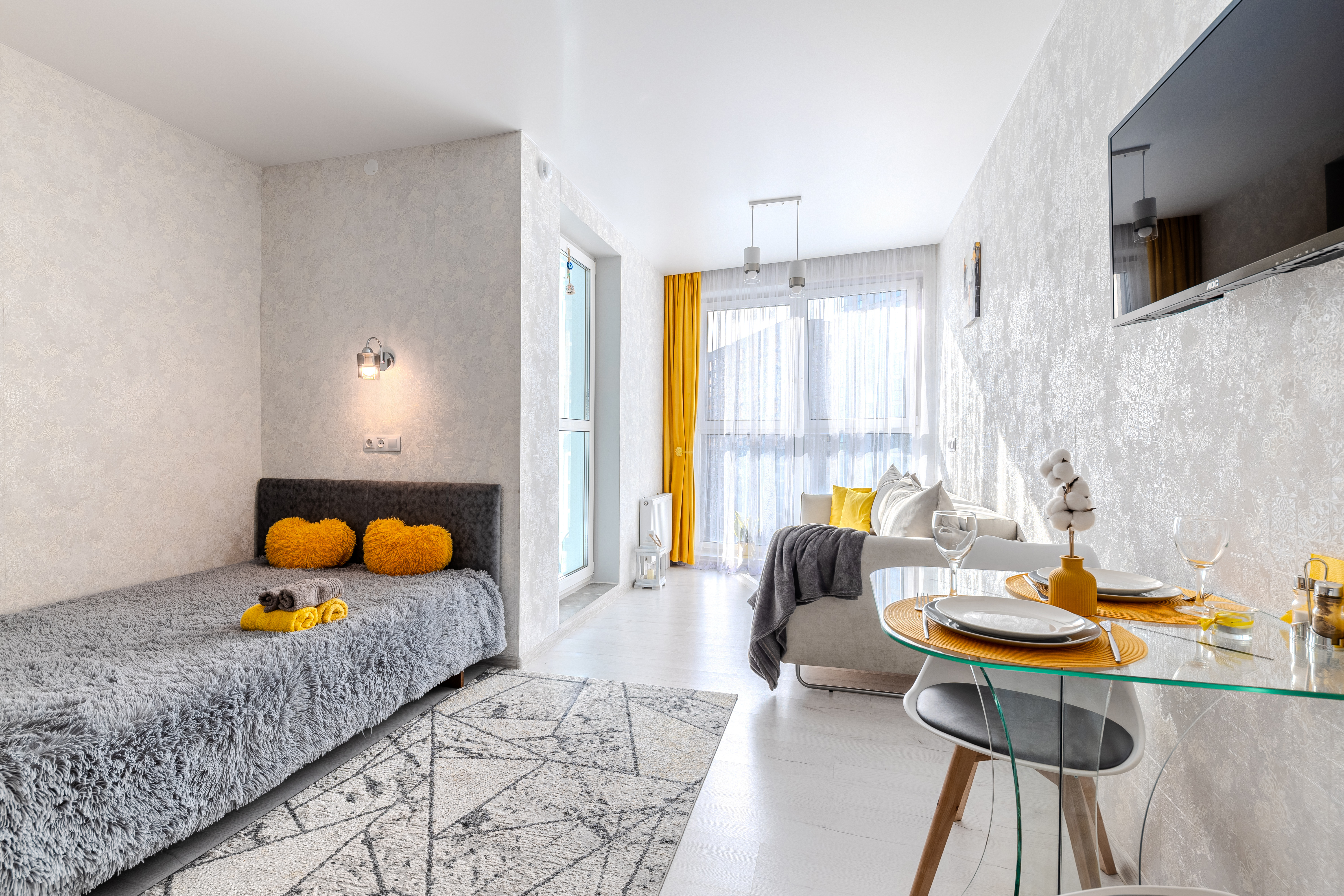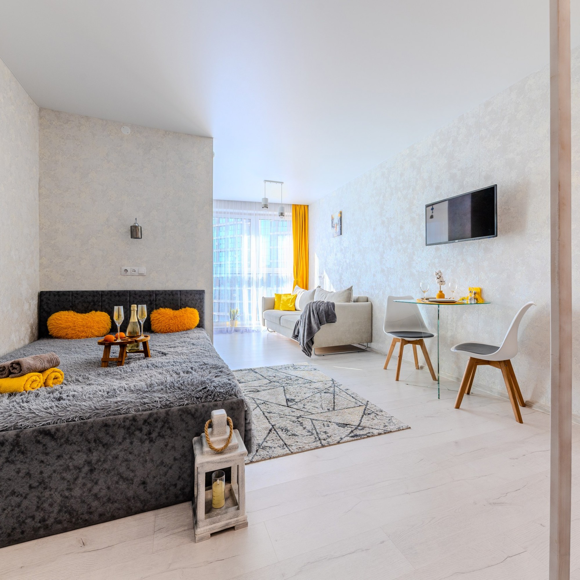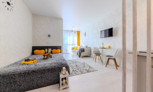 Студия оснащена всем необходимым для уютного проживания и приятного времяпрепровождения: Wi-Fi, TV-каналы, вся посуда, кофе-чай, фен, утюг, стиральная машина, микроволновка и т.д., расходники первой необходимости.
