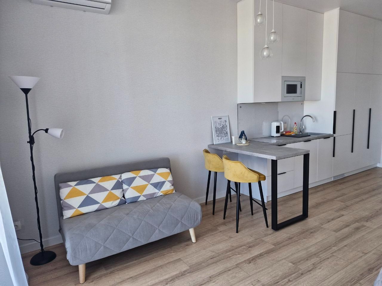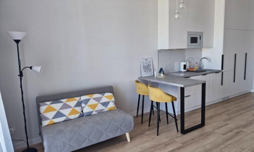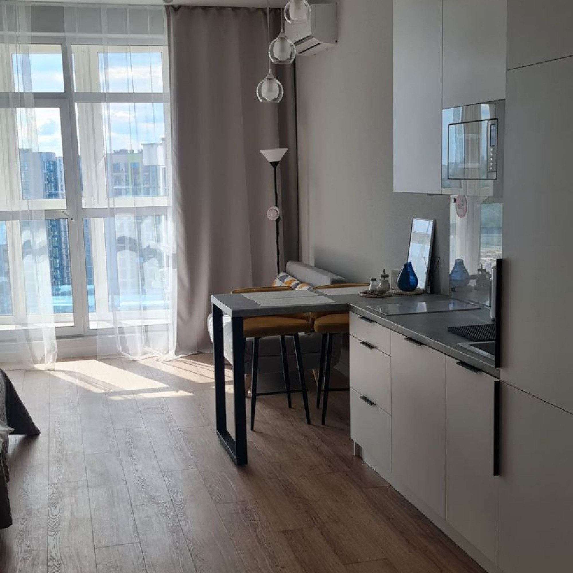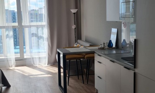 Уютная квартира-студия с прекрасным видом на город. Отличное место для отдыха или командировки. Новый современный ремонт, полностью оборудованная кухня, удобная кровать с ортопедическим матрасом. Рядом с домом кафе, магазины, спортивные площадки, гипермаркет, остановки общественного транспорта. Метро "Аэродромная" (7 минут пешком).