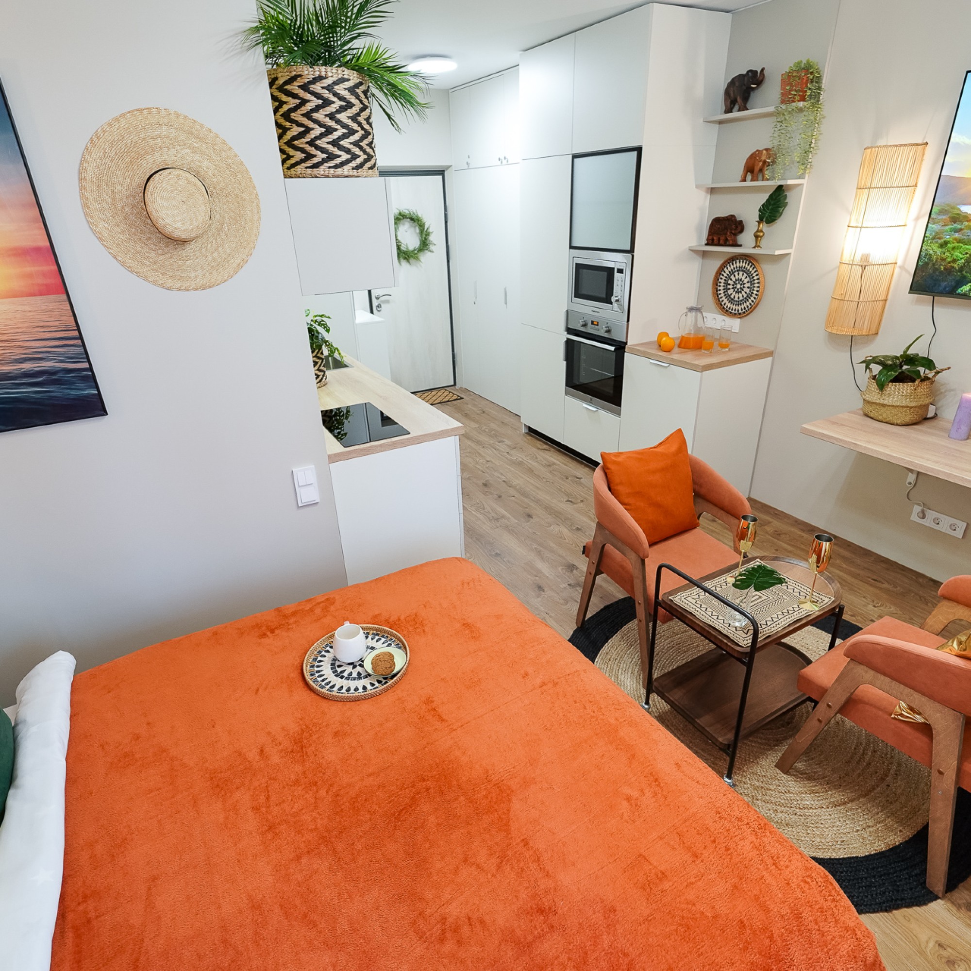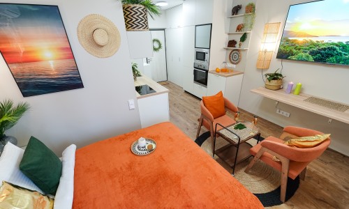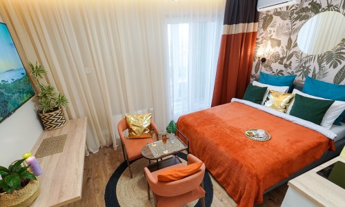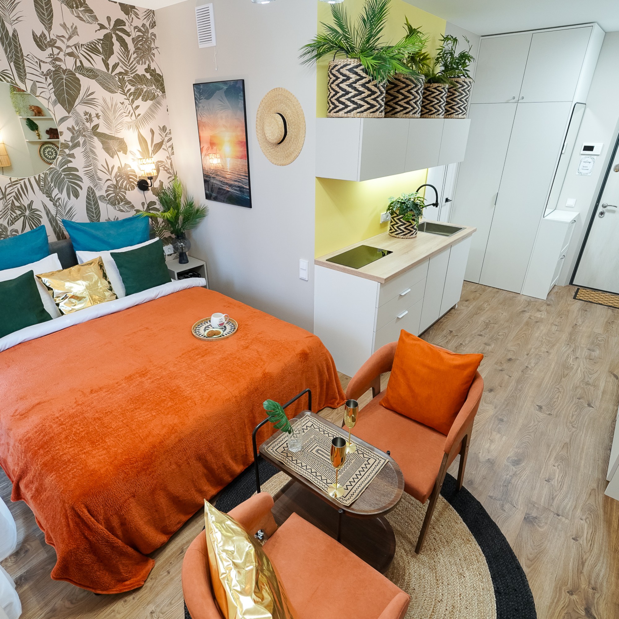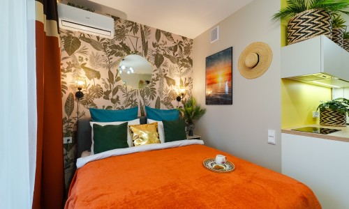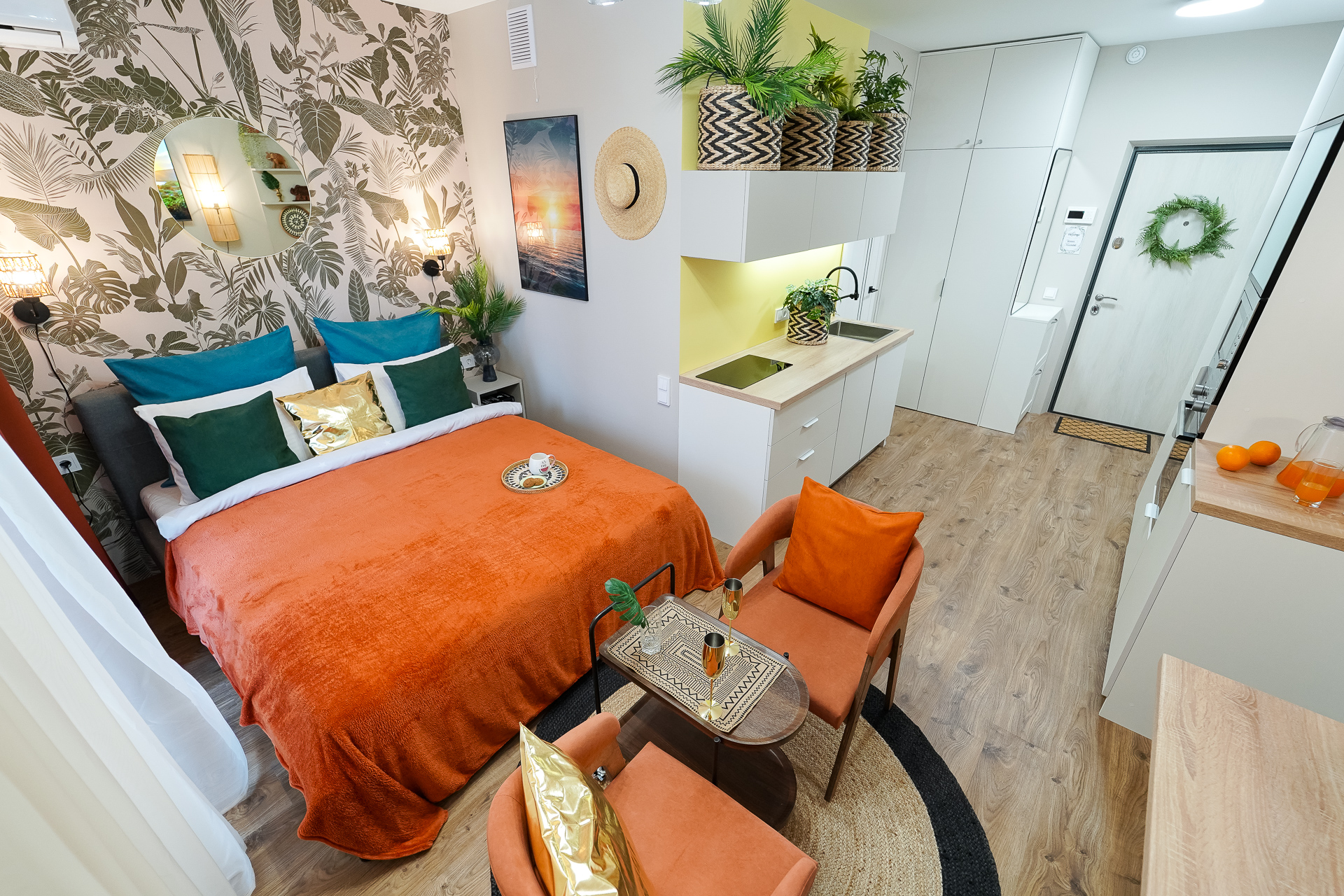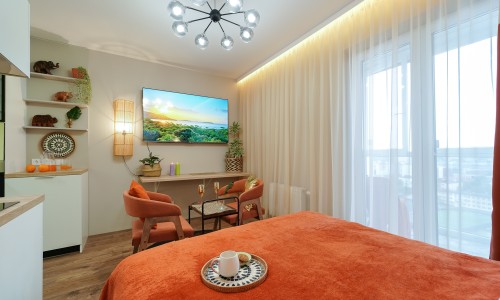 Ощутите лучший климат в Минске — вне зависимости от погоды за окном! Станьте гостем стильной студии: новой дизайнерской квартиры-студии в центре города, где атмосфера тропиков, уют SPA и безупречный комфорт сочетаются в одном пространстве.