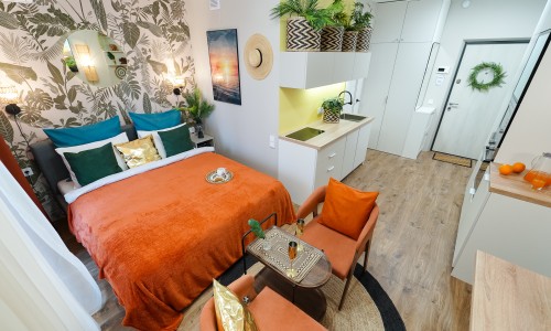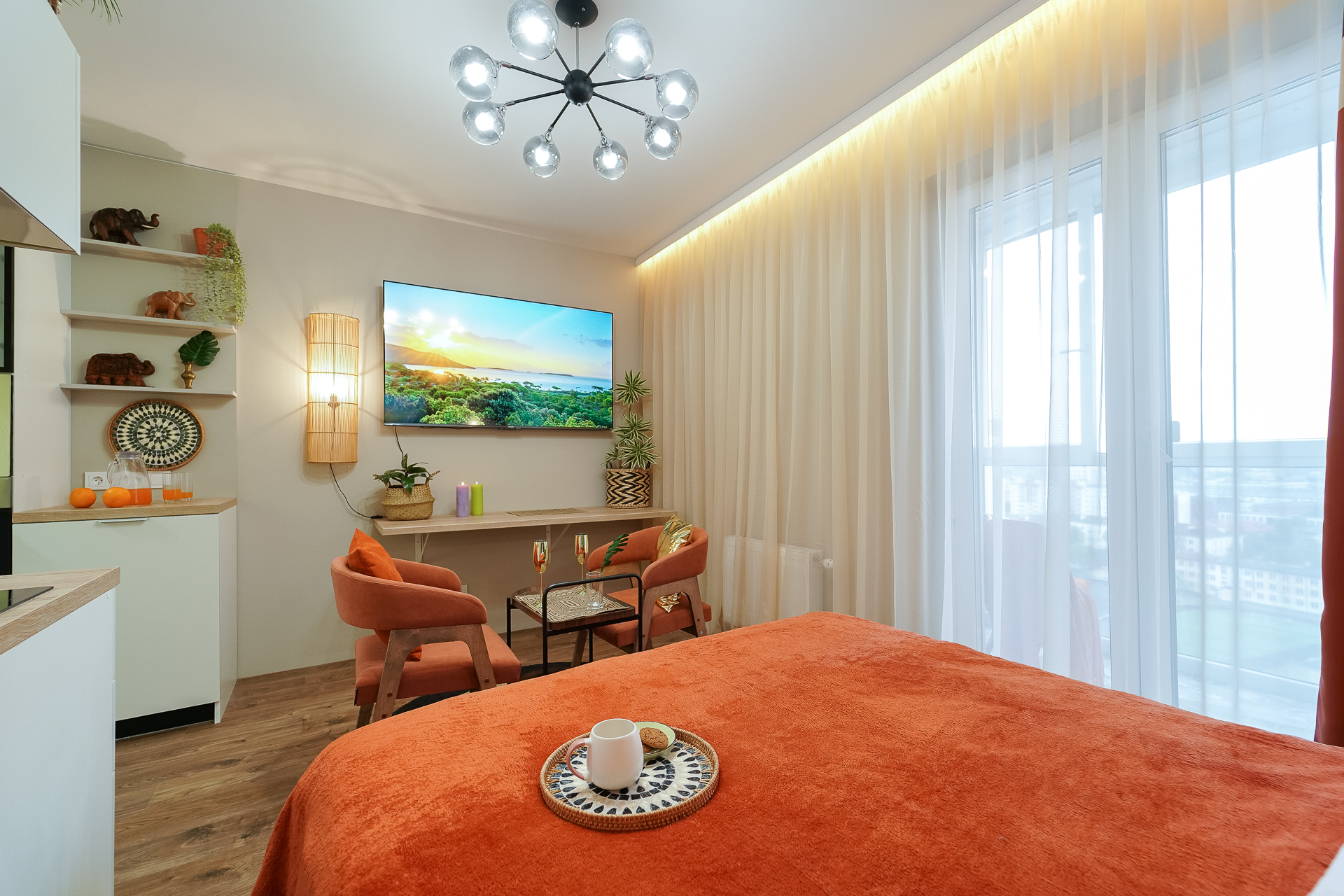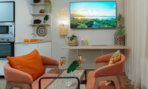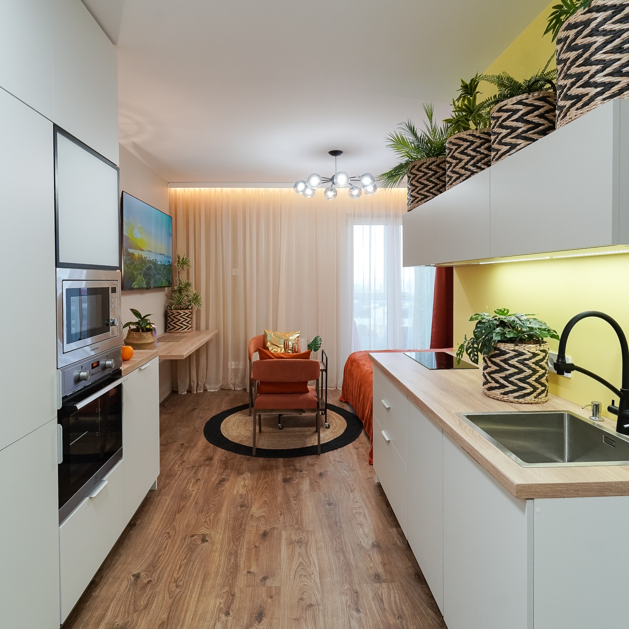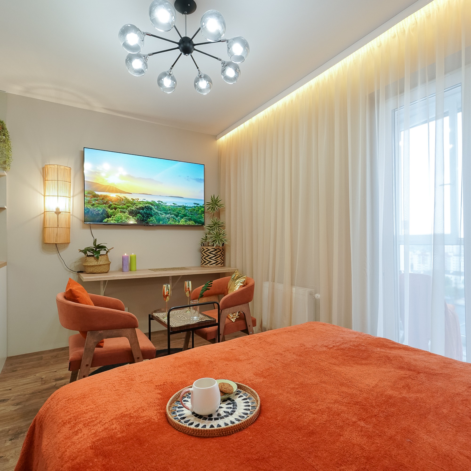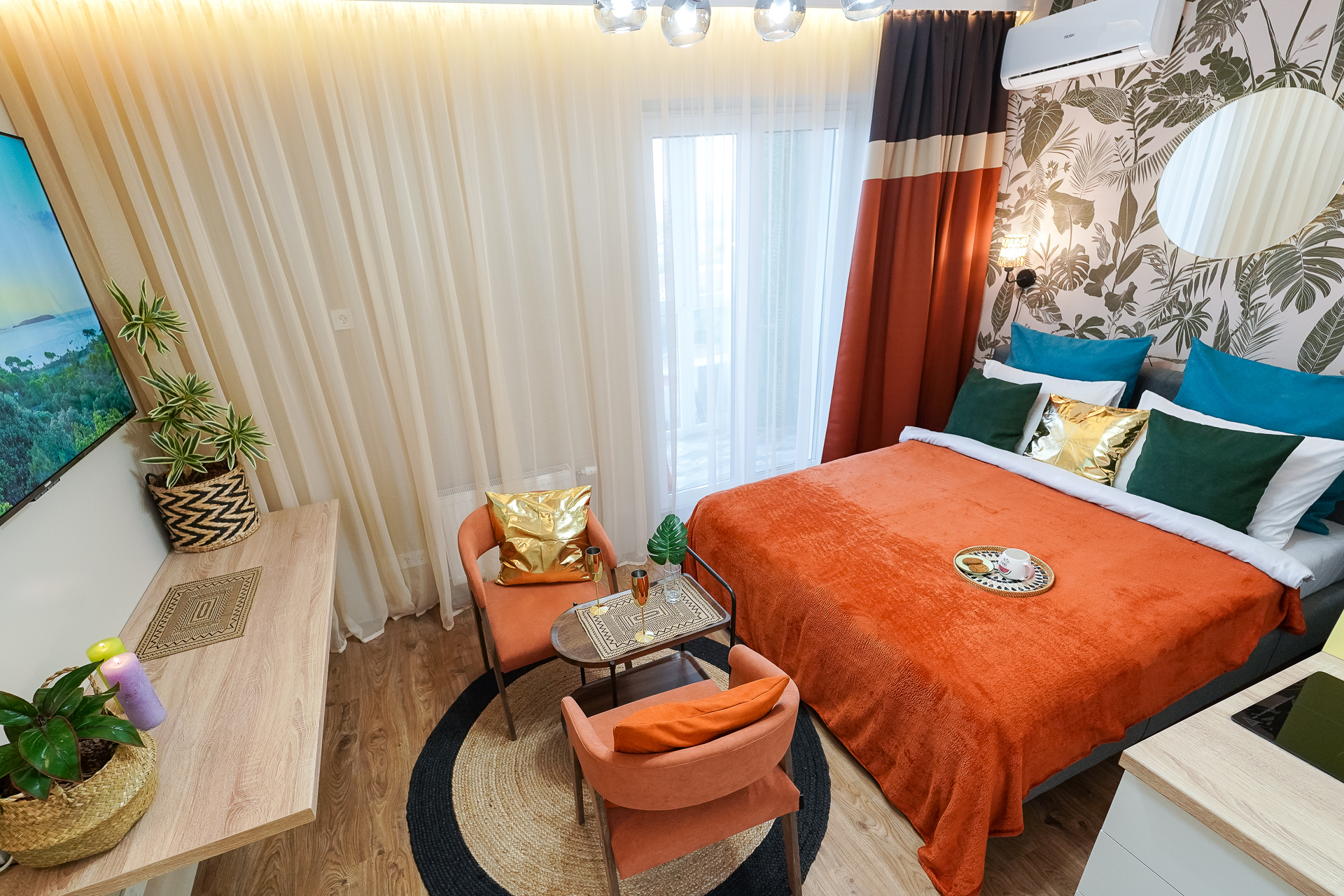 Ощутите лучший климат в Минске — вне зависимости от погоды за окном! Станьте гостем стильной студии: новой дизайнерской квартиры-студии в центре города, где атмосфера тропиков, уют SPA и безупречный комфорт сочетаются в одном пространстве.