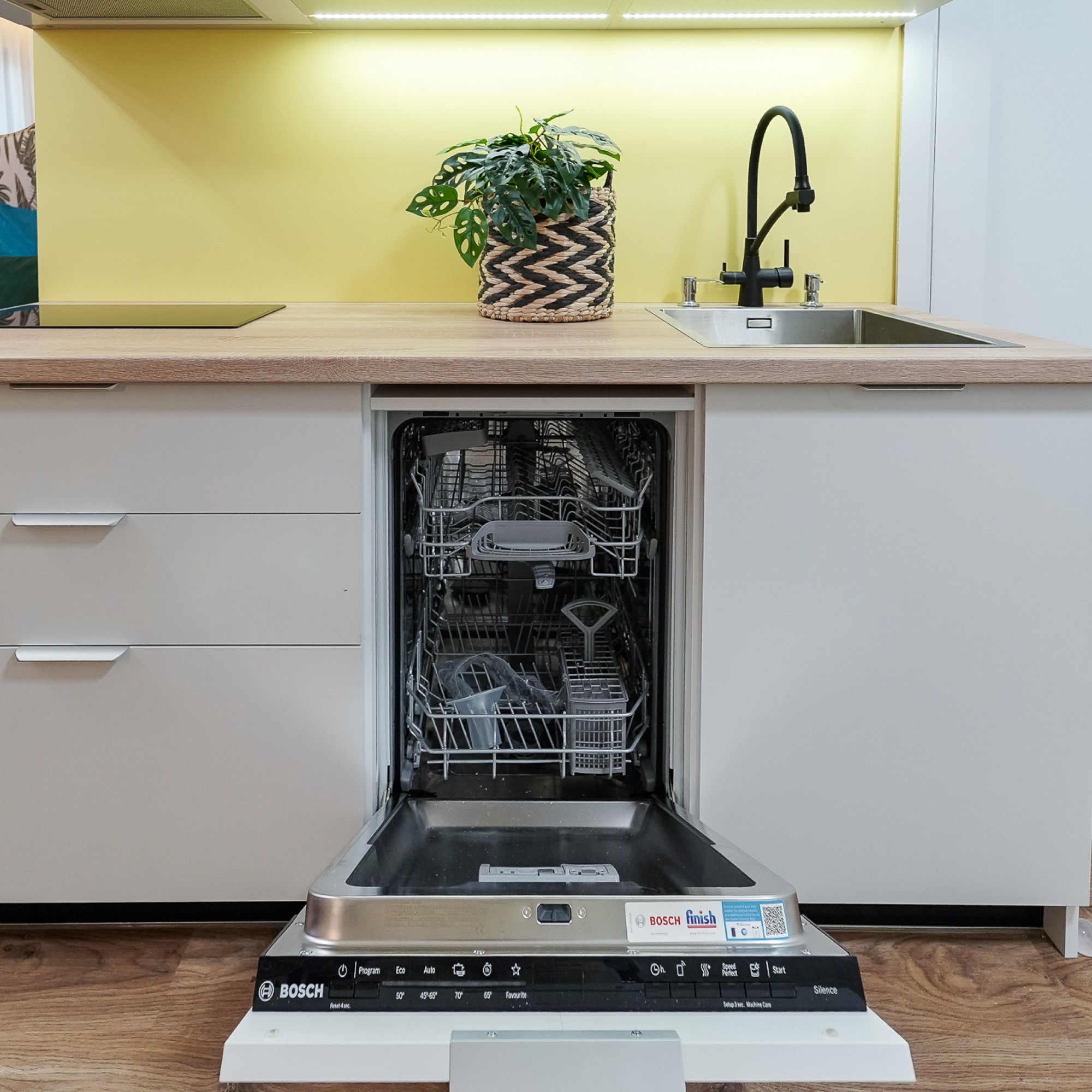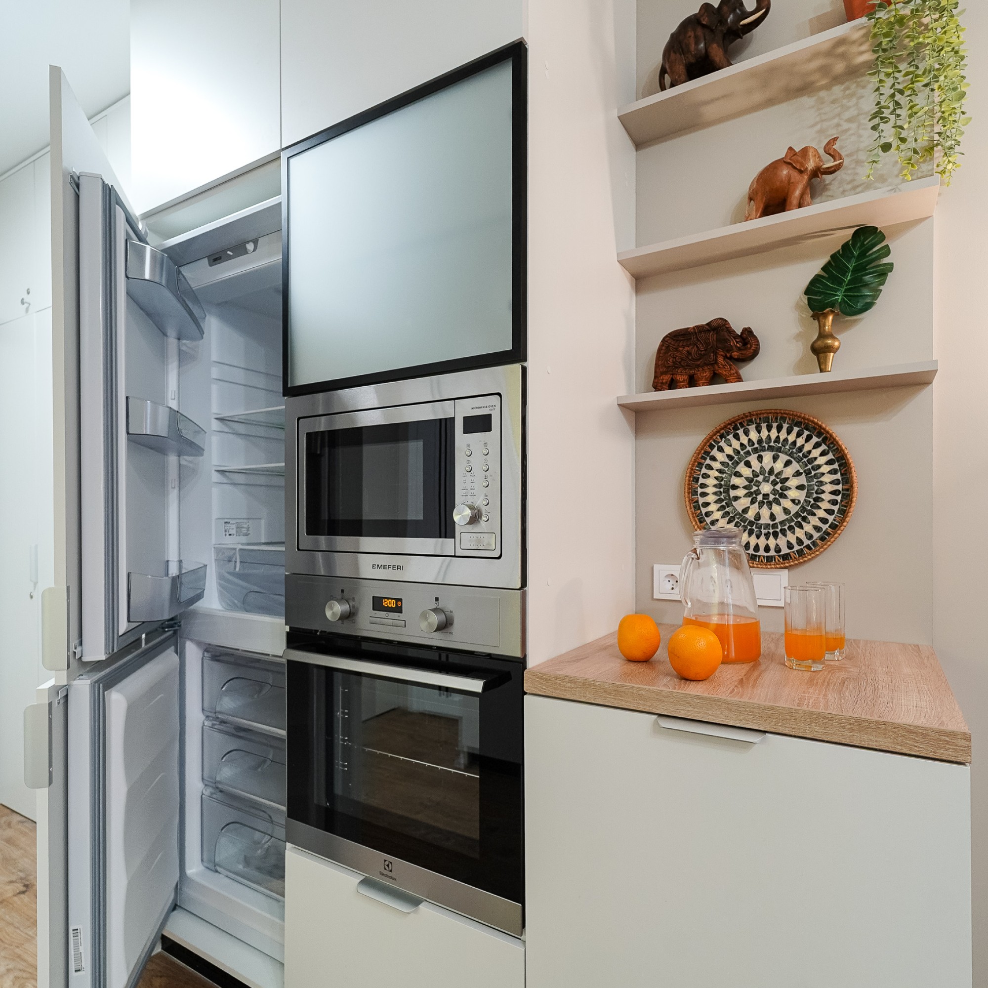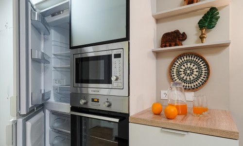 Полностью оборудованная кухня: духовка, посудомоечная машина, большой холодильник, фильтр для воды