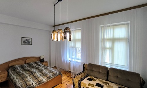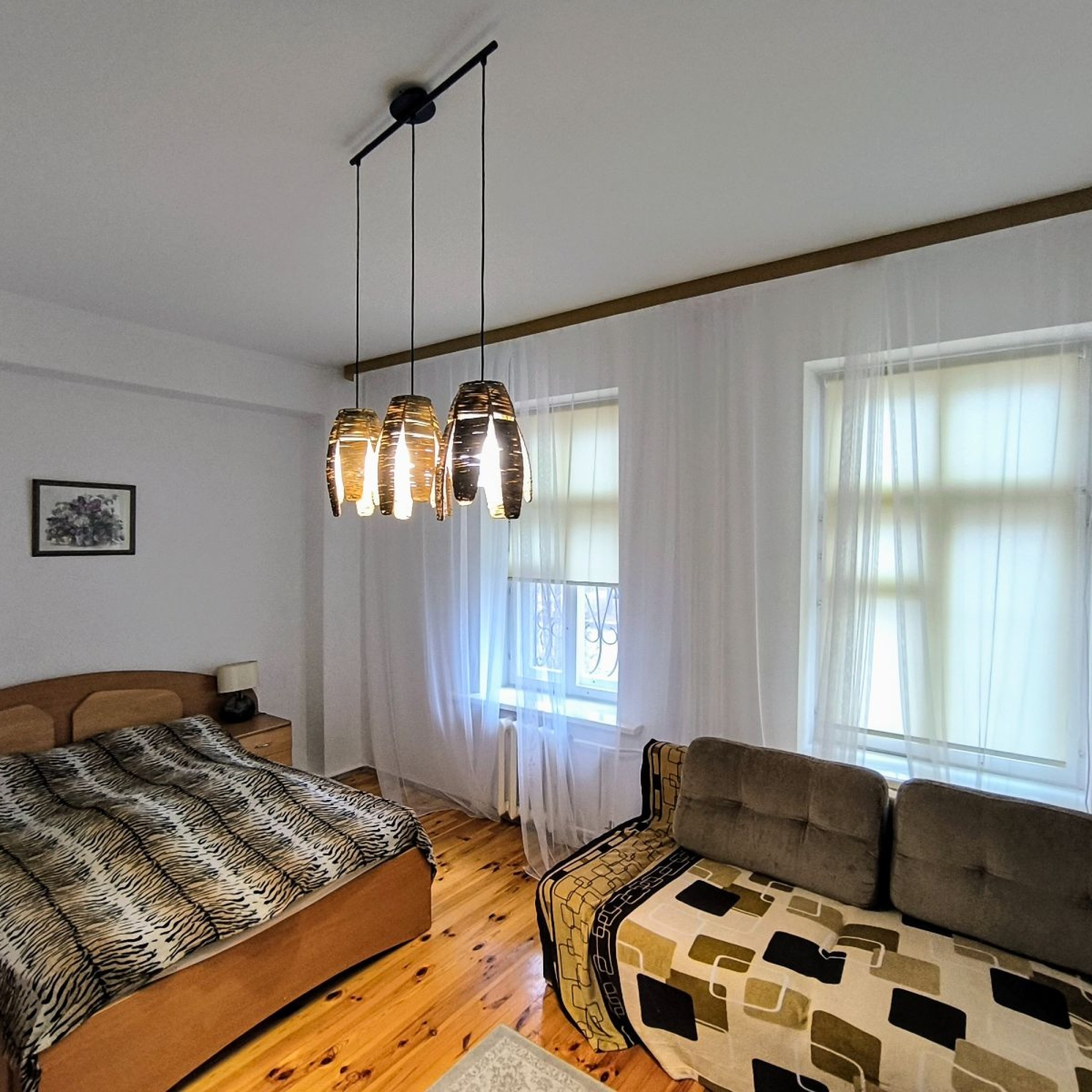 Квартира расположена в исторической части Гродно, в самом центре города. Большая площадь квартиры , просторные комнаты, высокие потолки не оставят вас равнодушными. Месторасположение дома удобно для туристов и гостей города. Рядом находится много кафе, ресторанов, закусочных, главная пешеходная улица города. В 5-15 минутах ходьбы находятся оба вокзала города.