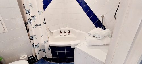 Квартира полностью укомплектована и готова к комфортному проживанию. Оборудована необходимой техникой (электрический чайник, микроволновка, посудомоечная машина, утюг, фен для волос, SmartTV, хорошая скорость wi-fi). В ванной уже есть набор косметики (гель для душа, шампунь и кондиционер для волос, зубная щётка и паста, набор для бритья), свежие полотенца и тапочки. На кухне вас ждет чай, кофе, крупы, подсолнечное масло, специи и другие продукты, чтобы вы перекусили с дороги.