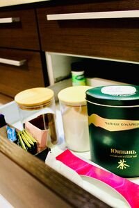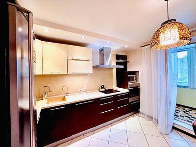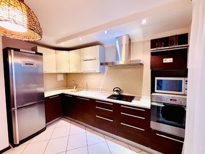 * Кухня: полностью оборудована для комфортного проживания: холодильник, плита, духовка, микроволновая печь, посудомоечная и стиральная машины, чайник, комплект столовой и кухонной посуды, кофе и чай.