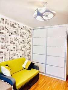 Спальня 2: односпальная кровать (90 см) + раскладной диван (120 см), вместительный шкаф, рабочий стол.