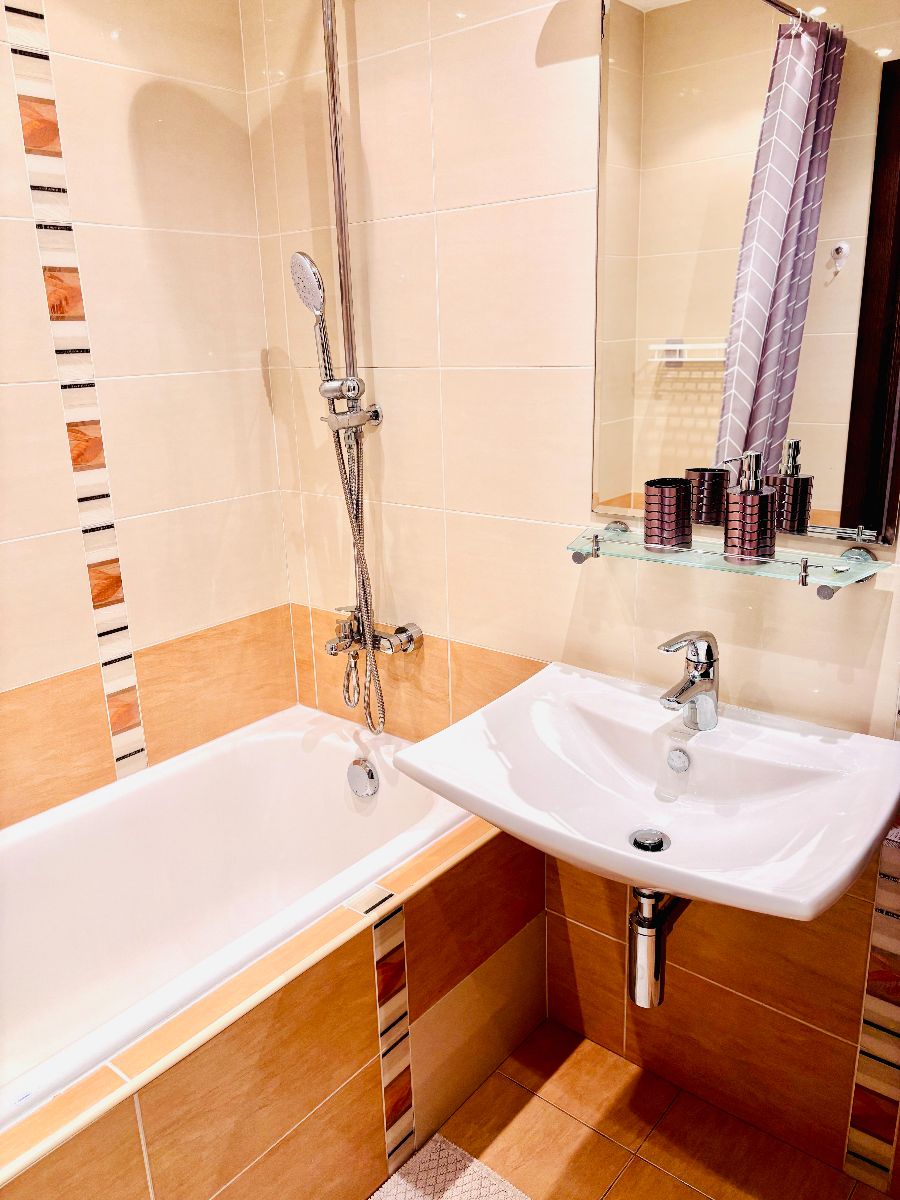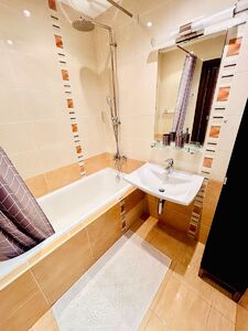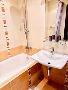 * Ванная комната: ванна, фен, комплект махровых полотенец, гигиенические принадлежности.