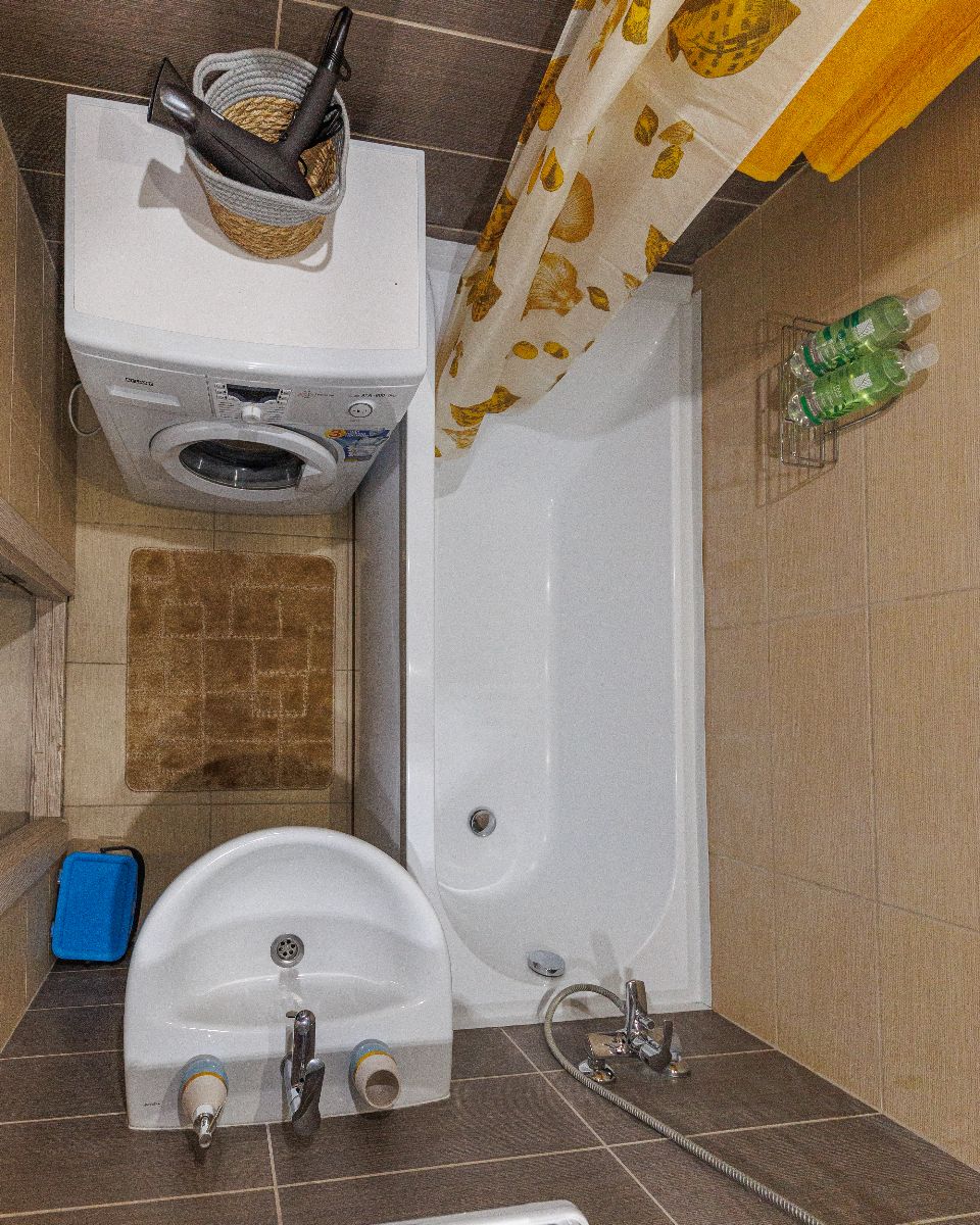 В квартире есть все необходимые для проживания: телевизор, кабельное телевидение, wi-fi, фен, утюг и гладильная доска, посуда, электрочайник, стиральная машина и порошок.