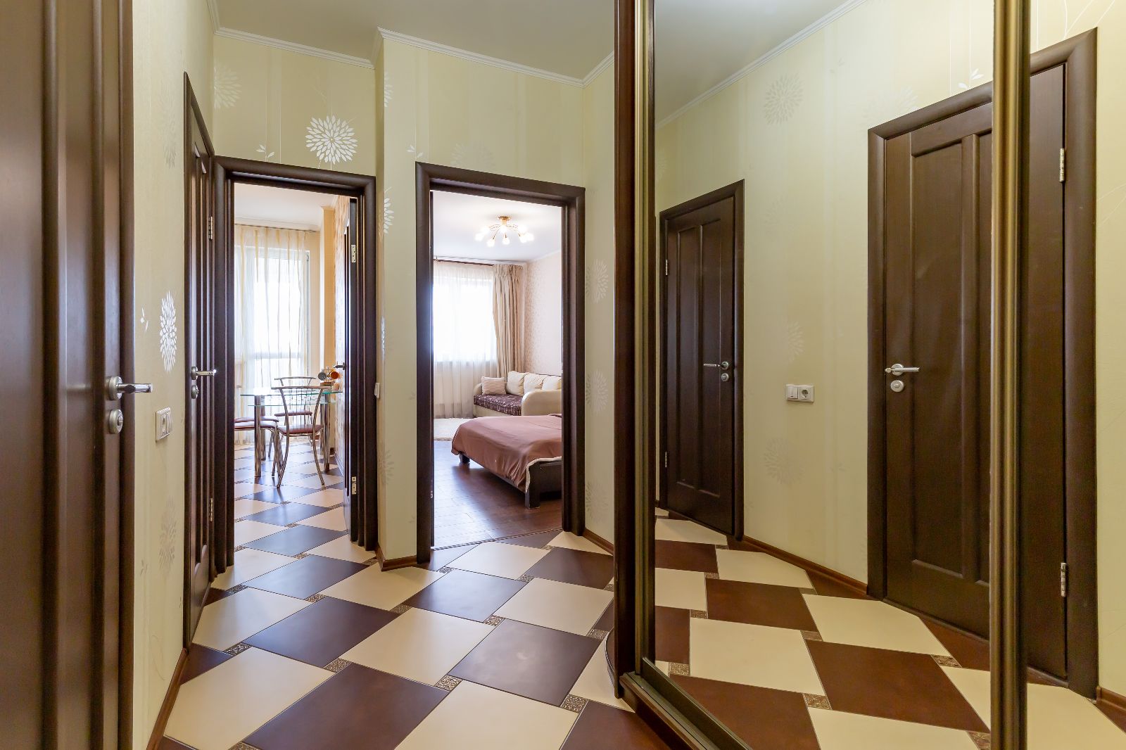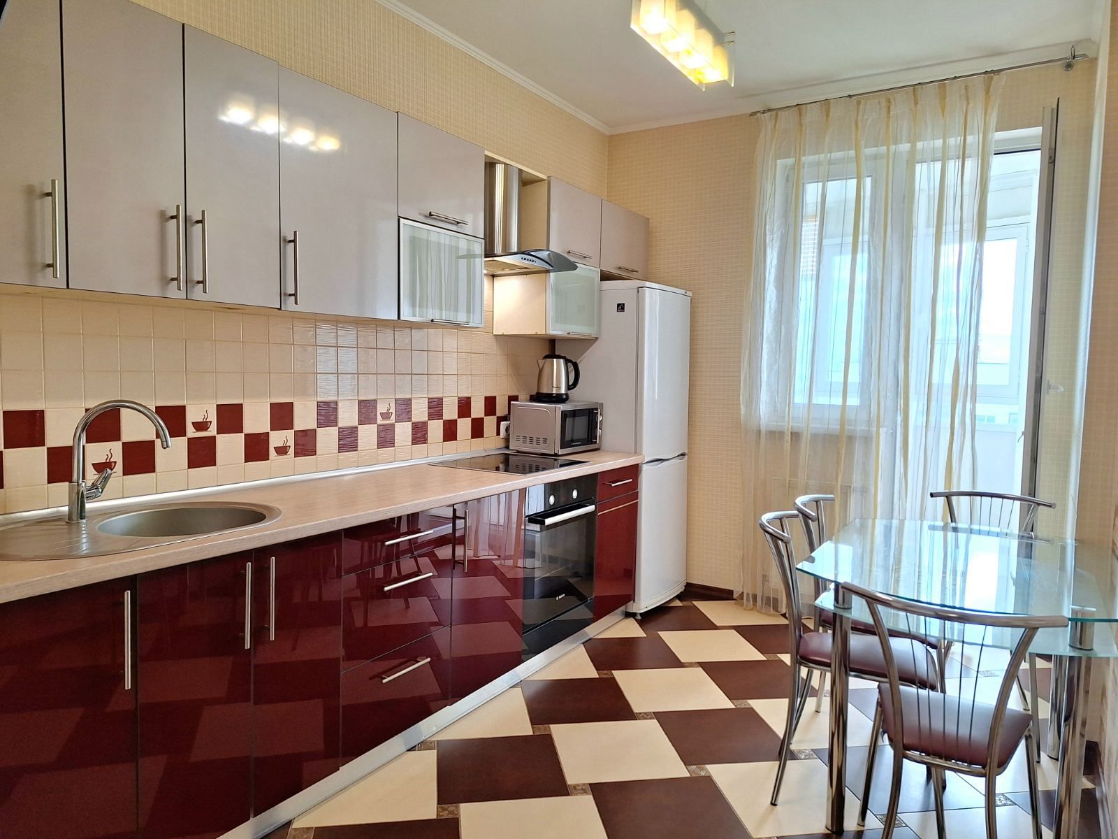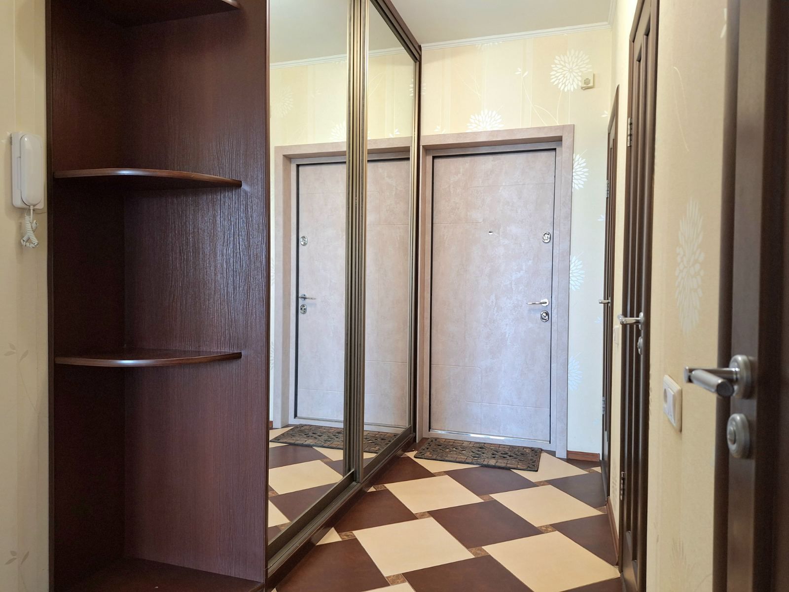 Современная благоустроенная квартира с хорошим ремонтом в новом 25-ти этажном доме (расположена на 21 этаже). С большой застекленной лоджии захватывающий панорамный вид города. Большая парковка, консьерж, просторный подъезд с диваном, зеркалом, цветами. Везде видеонаблюдение. В квартире всё необходимое для комфортного проживания от посуды и красивого постельного белья до приятных мелочей, как питьевая вода, чай, кофе, средства гигиены и т. д. В квартире домофон, стеклопакеты, металлическая дверь.