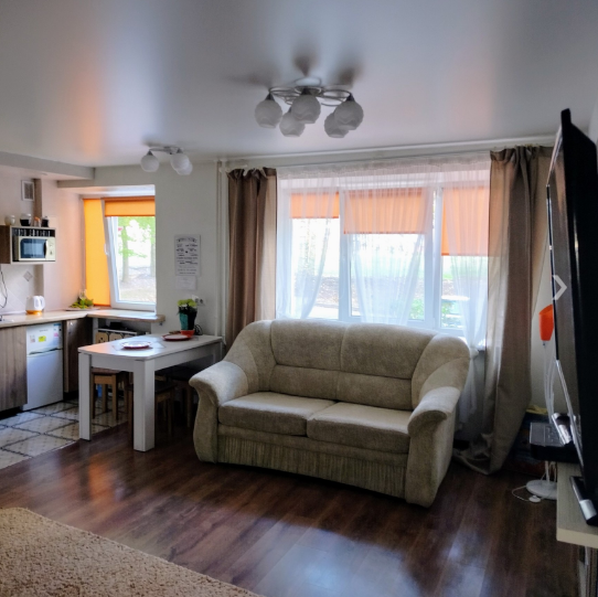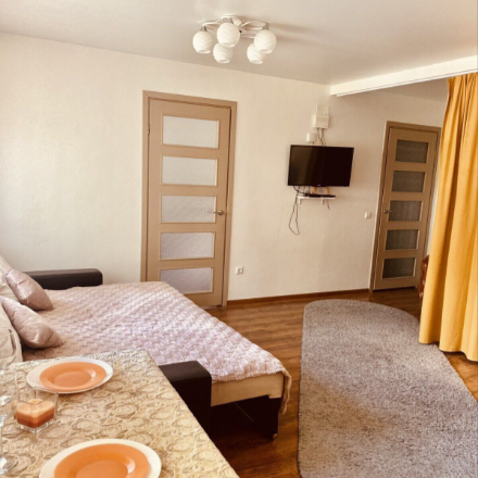 В квартире имеется всё для комфортного проживания: стиральная машина, микроволновая печь, холодильник, телевизор, интернет Wi-Fi, постельное бельё, фен, средства гигиены