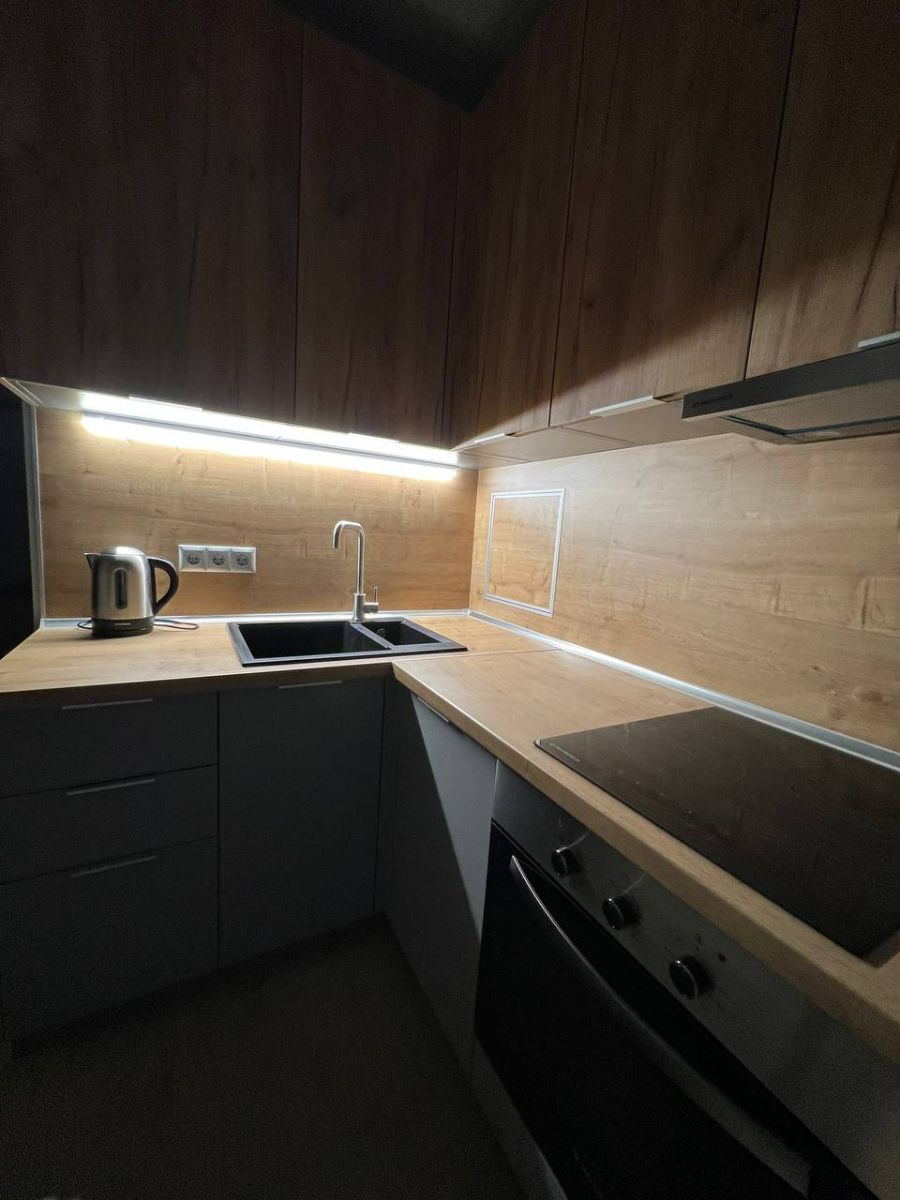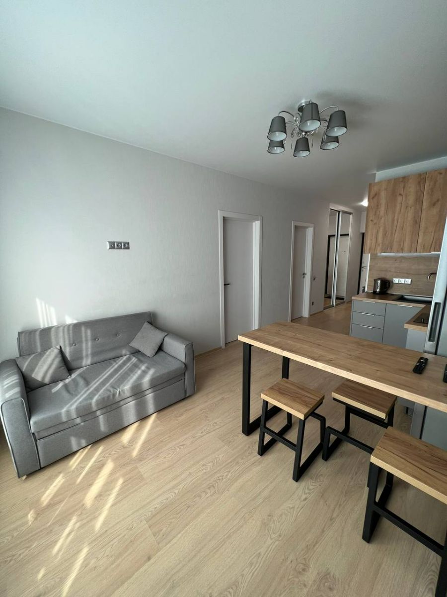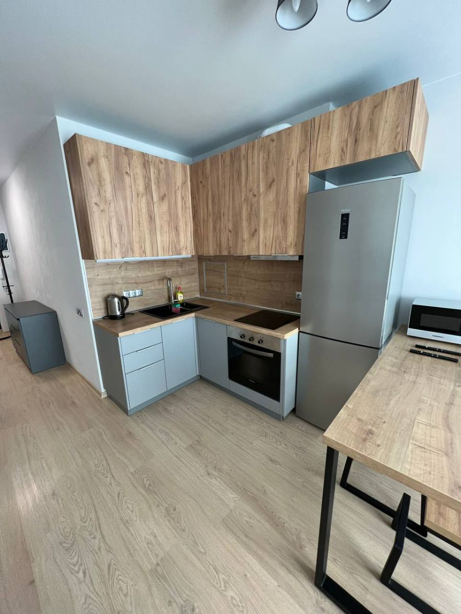 Минск-мир. Аренда 1-ком квартиры. Кухня студия + спальня, сан-узел совмещённый, застеклённый балкон. В наличии мебель и бытовая техника.