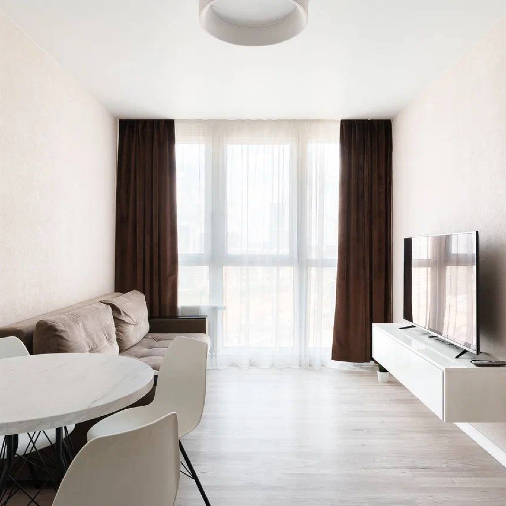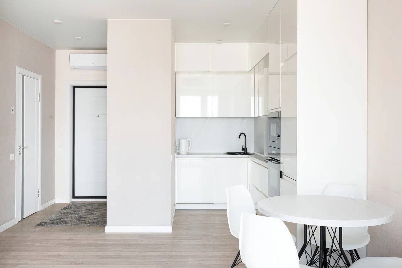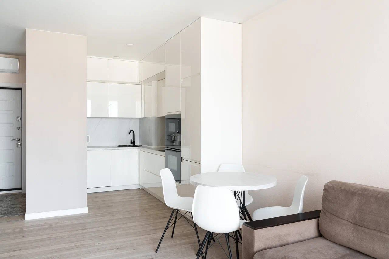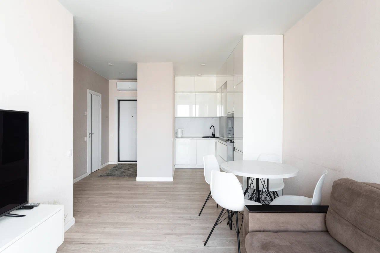 Квартира в новом доме, кухня-студия + спальня. Дизайнерский ремонт, в наличии мебель и бытовая техника. Панорамный вид из окон. Не сдаётся для вечеринок и корпоративов.