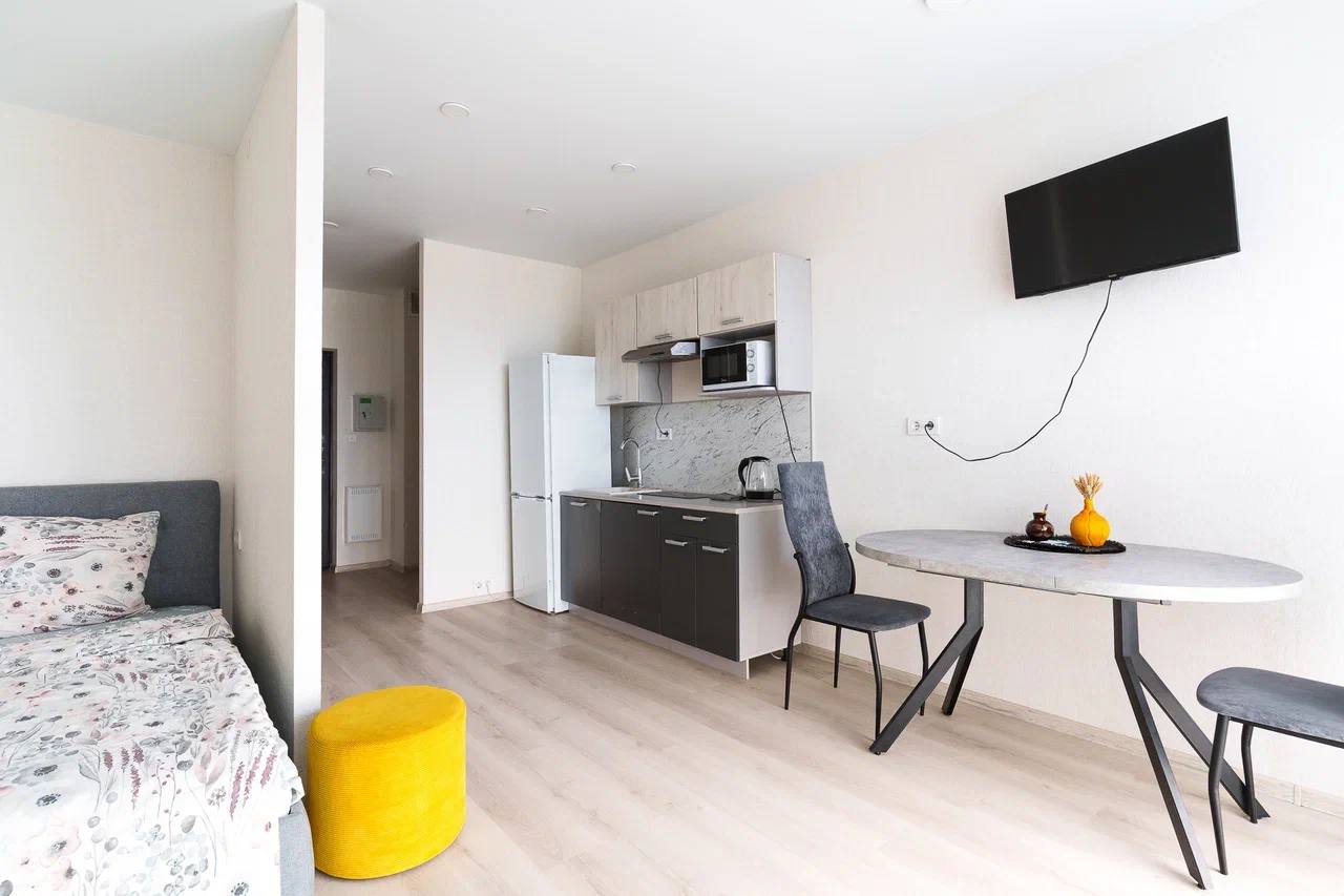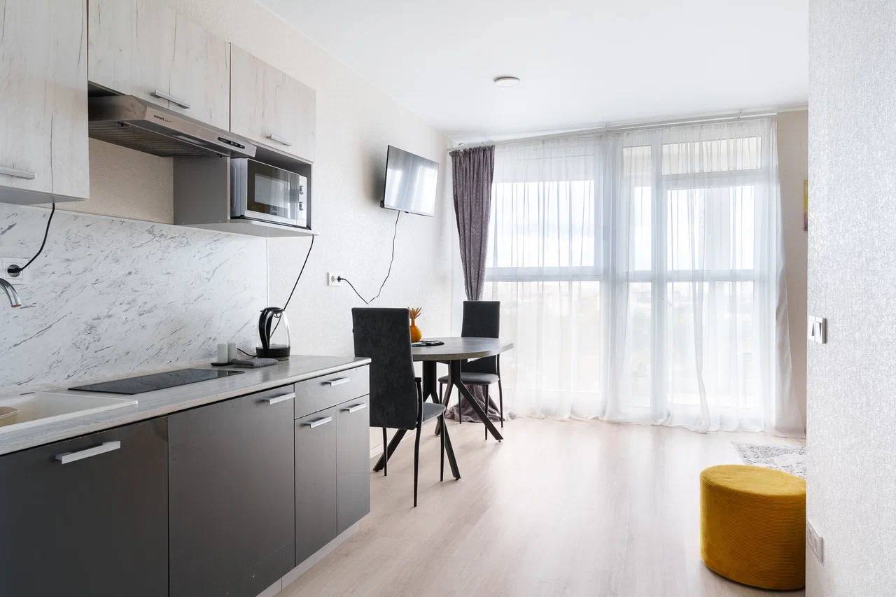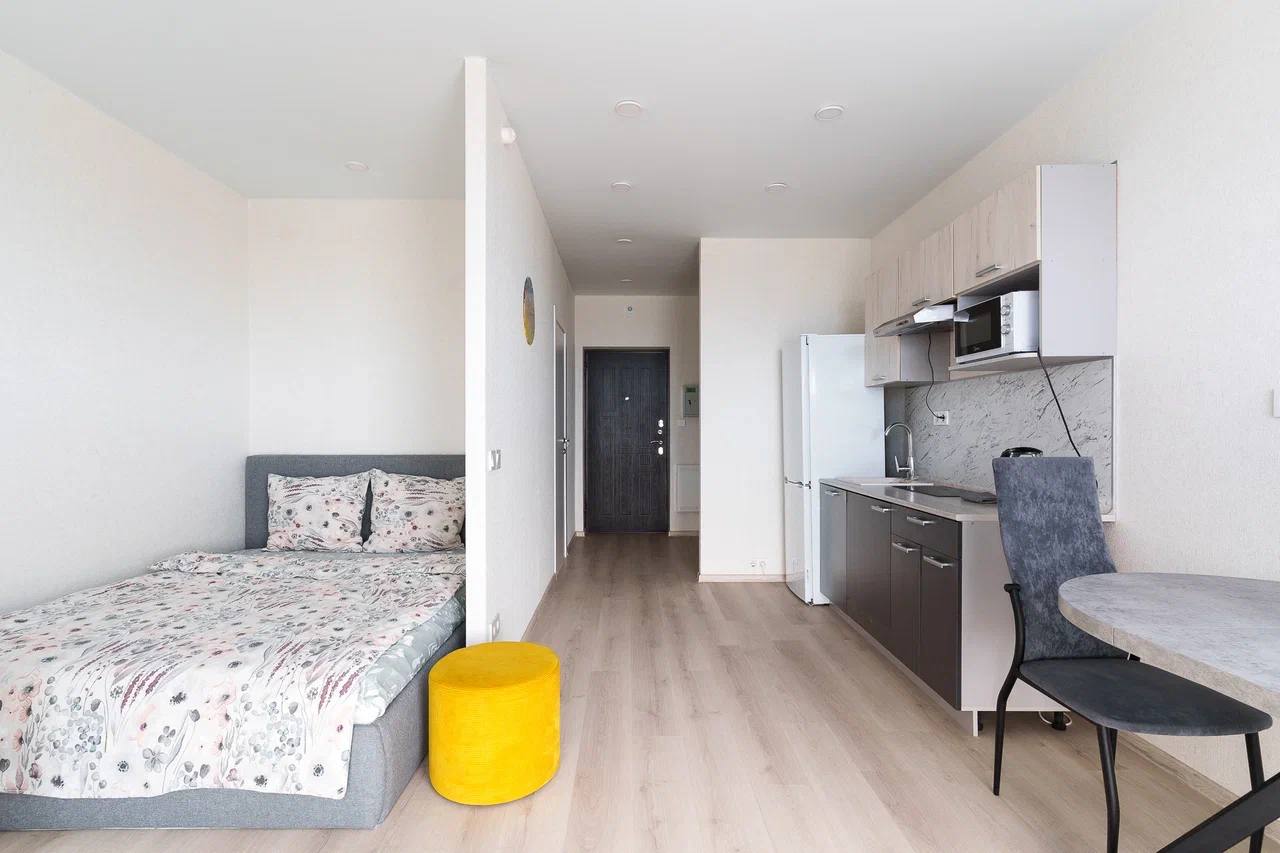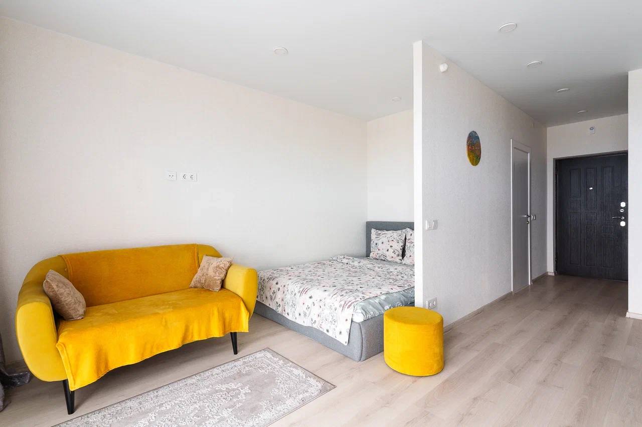 Ул. Лейтенанта Кижеватова 3д, квартира студия, общая площадь 28 кв. м, 11-й этаж. Панорамный вид из окон, в наличии мебель, бытовая техника, постельное бельё. Не сдаётся для вечеринок и корпоративов.