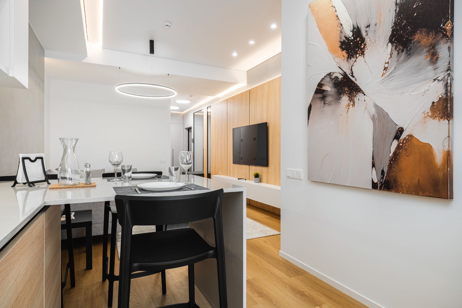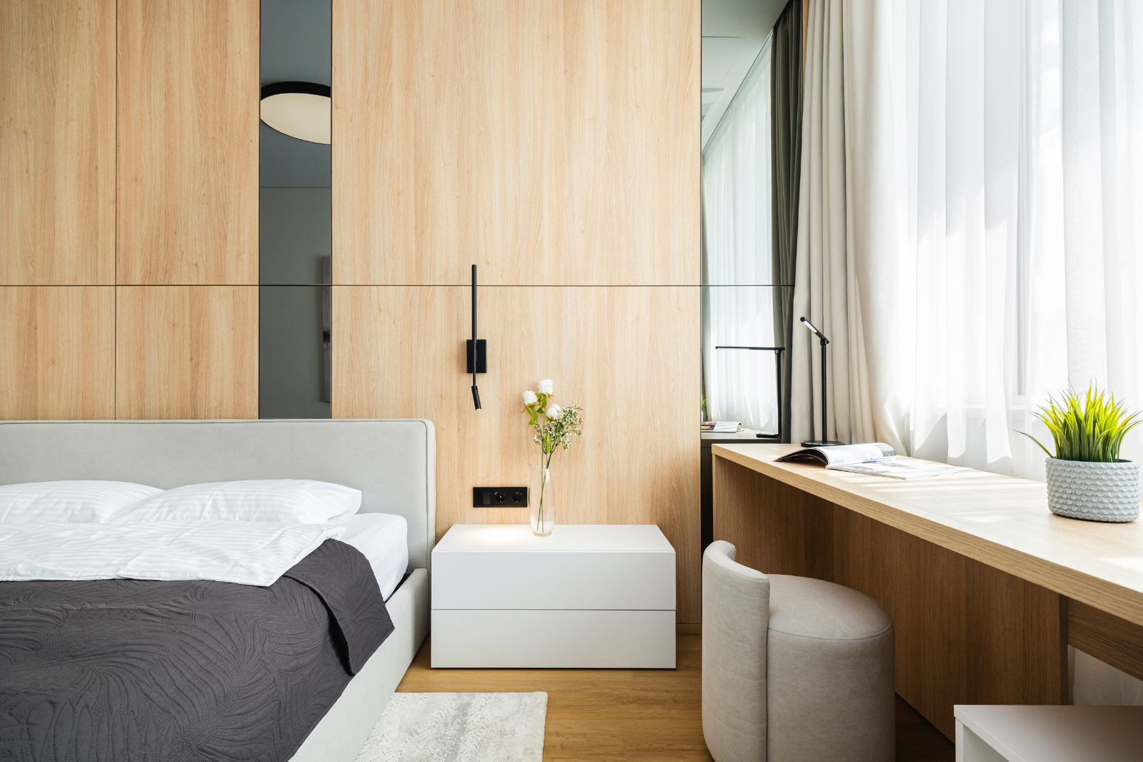Апартаменты с дизайнерским ремонтом в бизнес-центре "Премьер" в тихом, экологически чистом районе. Для вашего комфорта отдельная спальня с большой кроватью и ортопедическим матрасом, кондиционер в каждой комнате, новая бытовая техника, полотенца и туалетные принадлежности. Ограниченный доступ на этаж. В шаговой доступности круглосуточные супермаркеты, аптеки, банки, фитнес центр, медицинский центр, остановки общественного транспорта. В 10 минутах станция метро Уручье. Удобный выезд на МКАД, трассу Москва-Брест и дорогу в аэропорт.