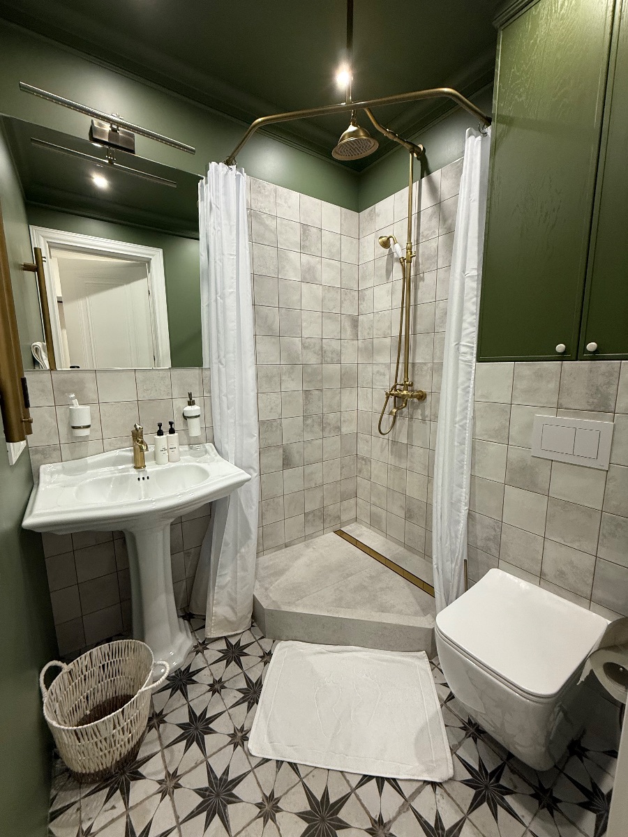 В наших апартаментах гости всегда найдут: кондиционер, стиральную машину, зонт,утюг и гладильную доску, мягкие тапочки, 3 полотенца на гостя, мощный фен , губку для обуви, зубную щетку и пасту, мыло и гель для душа, шампунь и кондиционер для волос, кухню со всей необходимой утварью (чай, чистую питьевую воду соль, перец, масло и сахар)