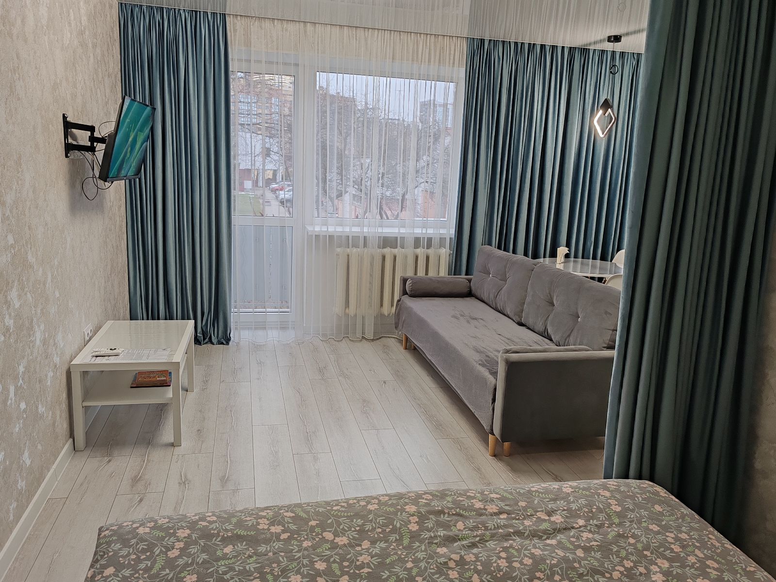 Уютная квартира-студия в центре города. Окна выходят во двор. Имеется все необходимое для комфортного проживания. Рядом улица Советская, Гоголя, аптеки, банки, магазины и кафэ.