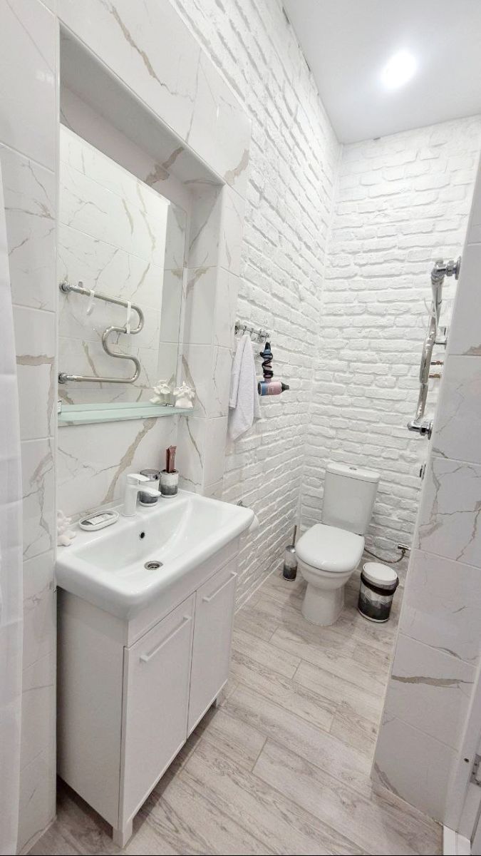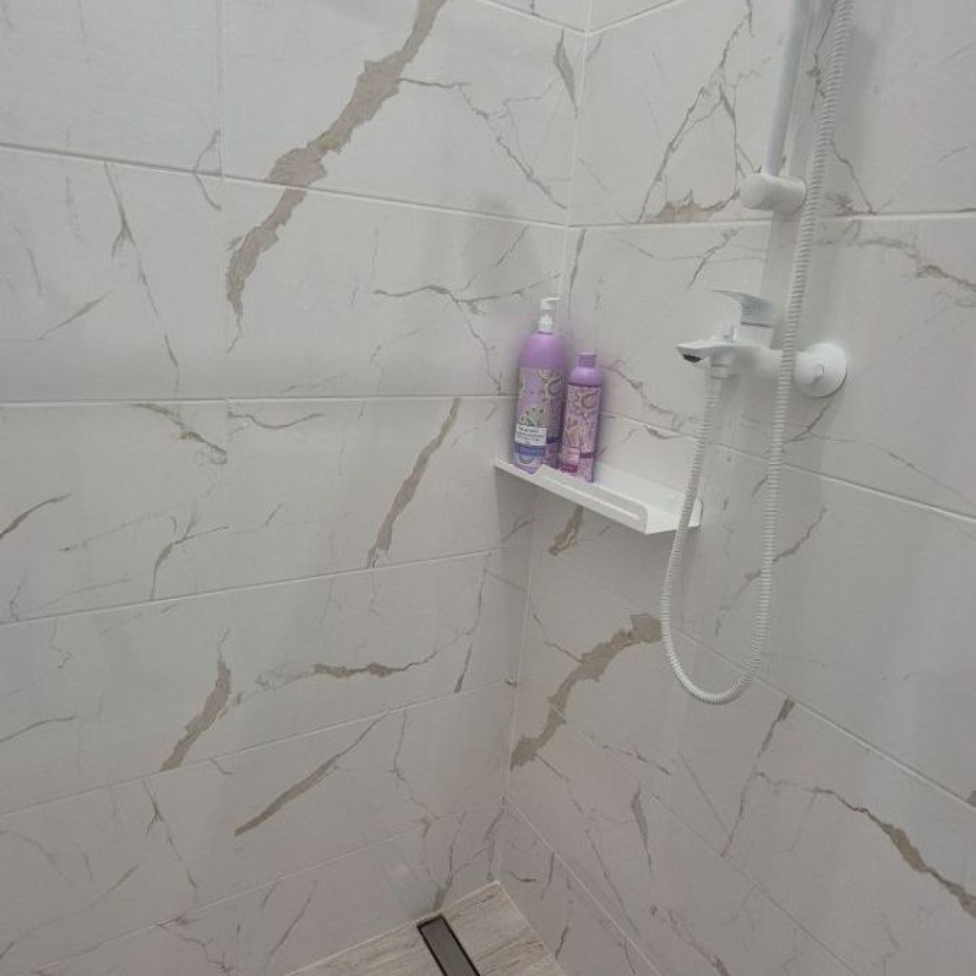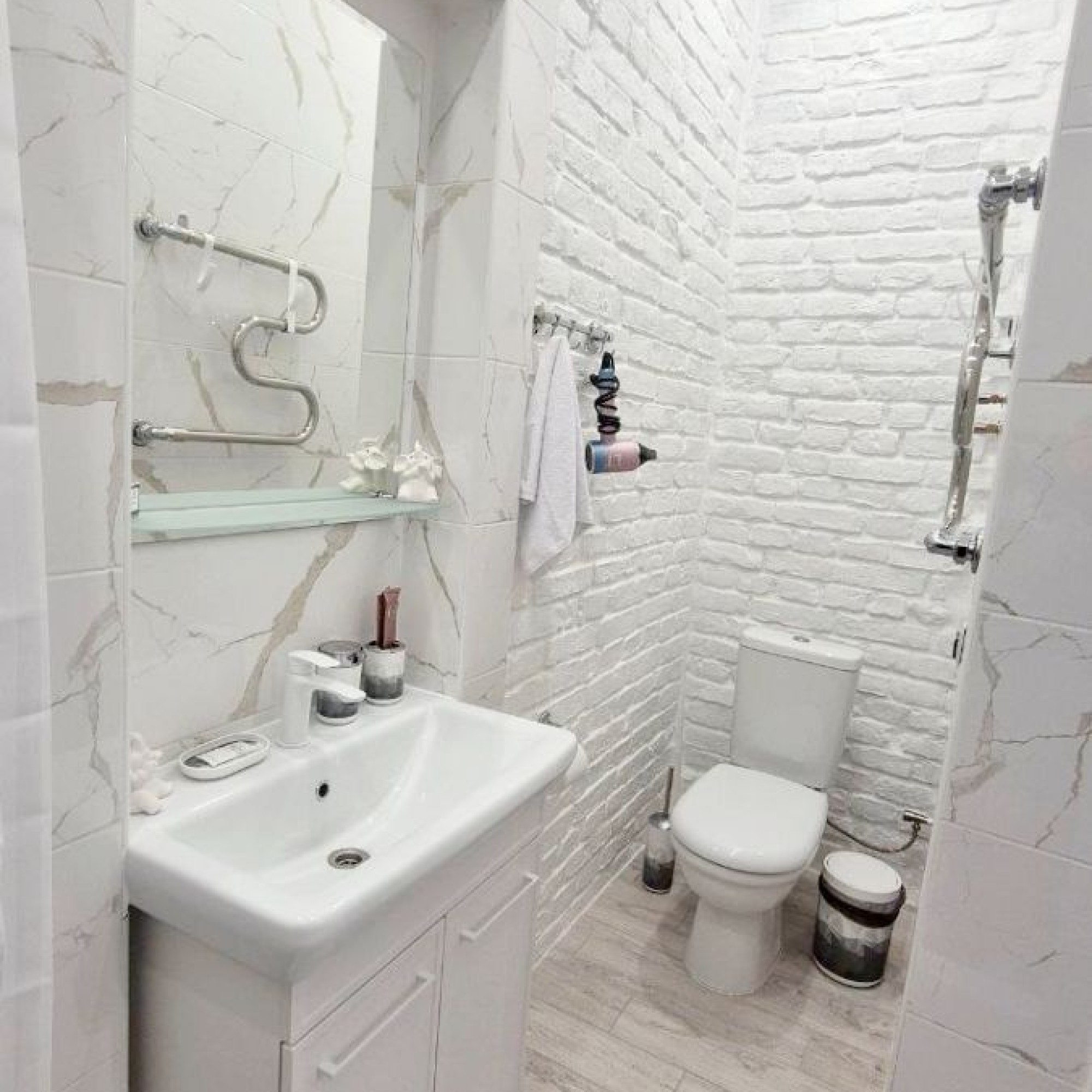 В апартаментах есть душевая комната совмещенная с санузлом. Вас ждут белоснежные полотенца, шампунь и мыло.