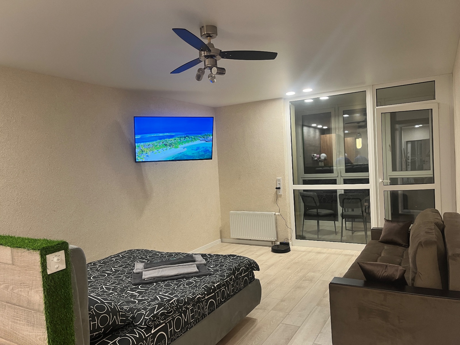 Для вашего комфортного отдыха 2х спальная кровать с ортопедическим матрасом премиум класса (спальное место 160*200), диван-кровать с независимым пружинным блоком, люстра-вентилятор, индукционная плита, полностью оборудованная кухня, вплоть до посудомойки и кофемашины, выделенное рабочее место, тропический душ, гигиенический душ, стиральное машина с функцией стирки паром, телевизор диагональю 50 дюймов с андроид системой, утюг, гладильная доска, фен.