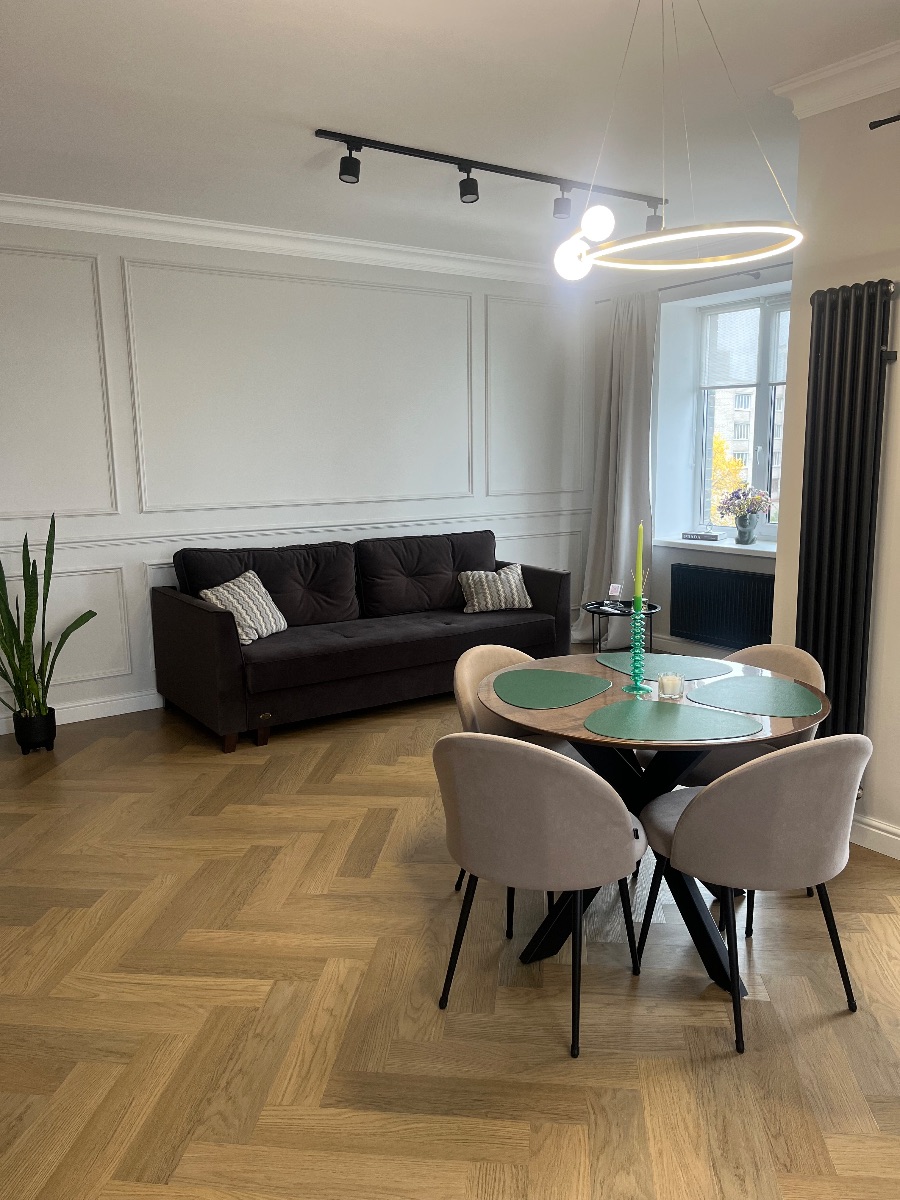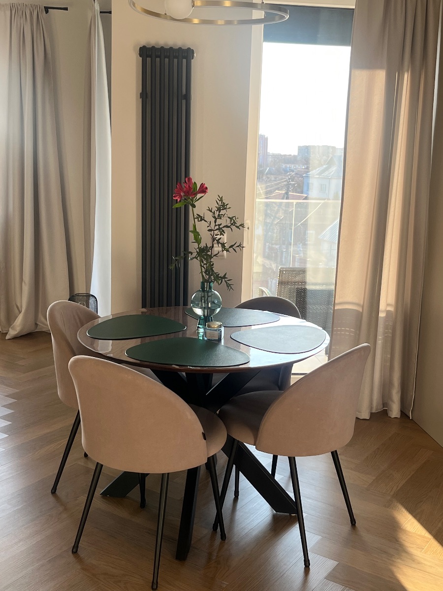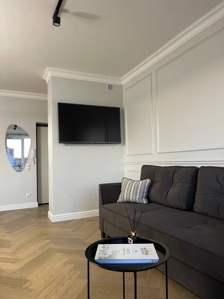 Квартира оборудована всем необходимым для комфортного проживания: кондиционером, капсульной кофемашиной, посудомоечной и стиральной машиной, индукционной плитой с вытяжкой, духовым шкафом и микроволновкой, феном, утюгом с гладильной доской, телевизором с диагональю 55 дюймов (со смартТв и смартZALA).