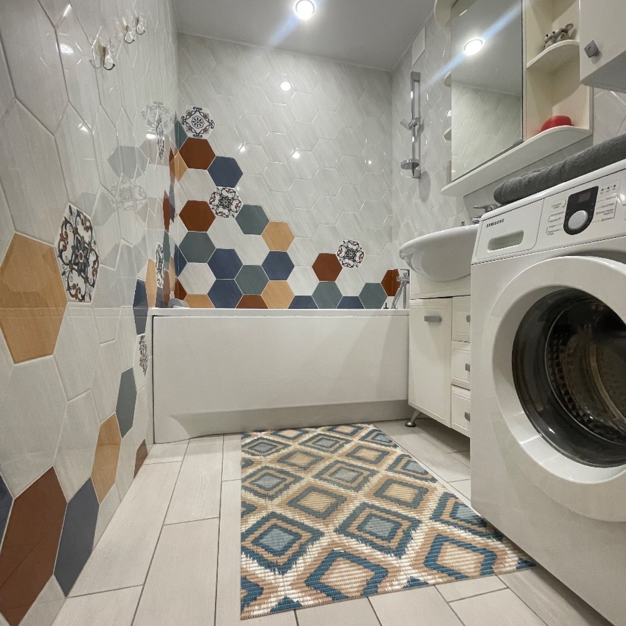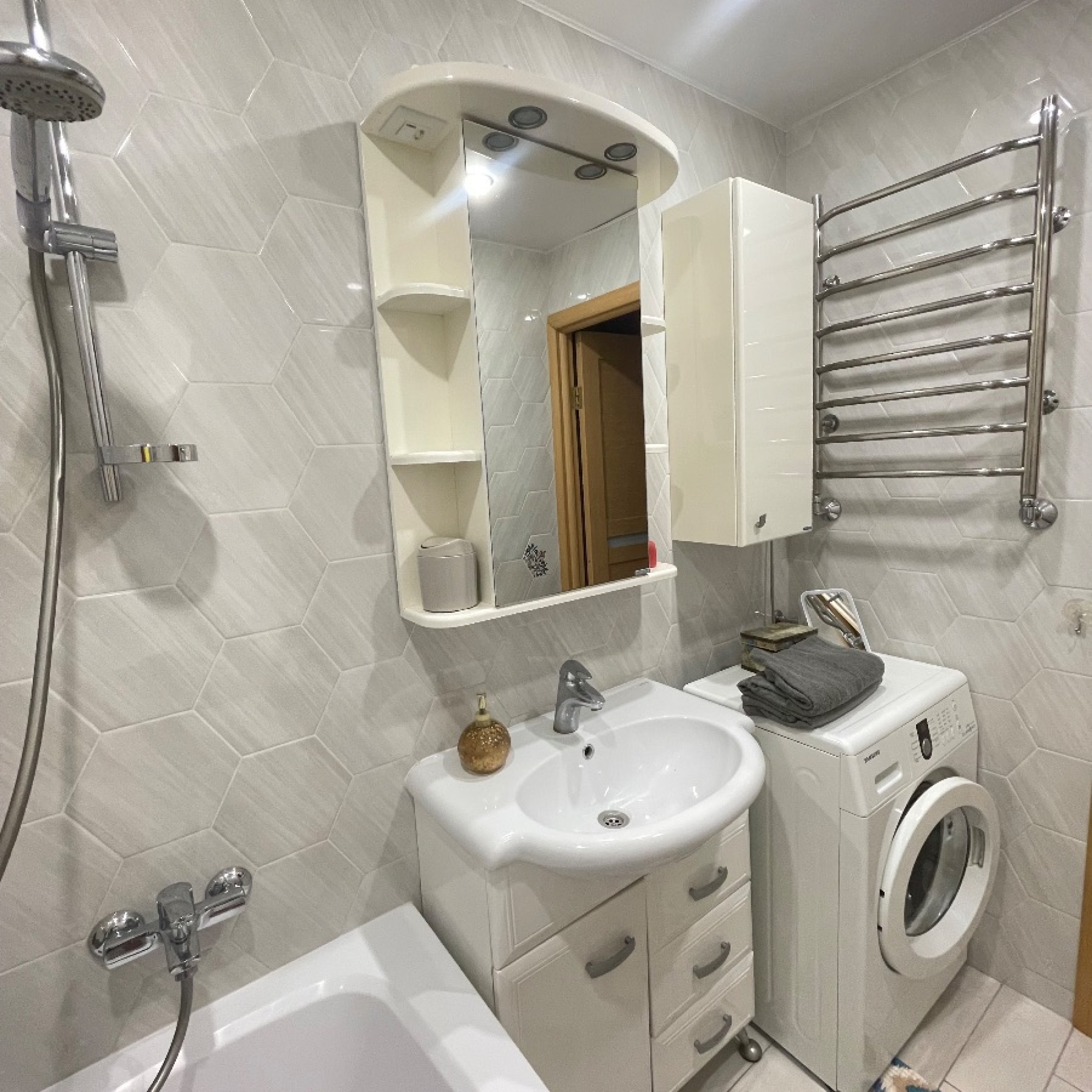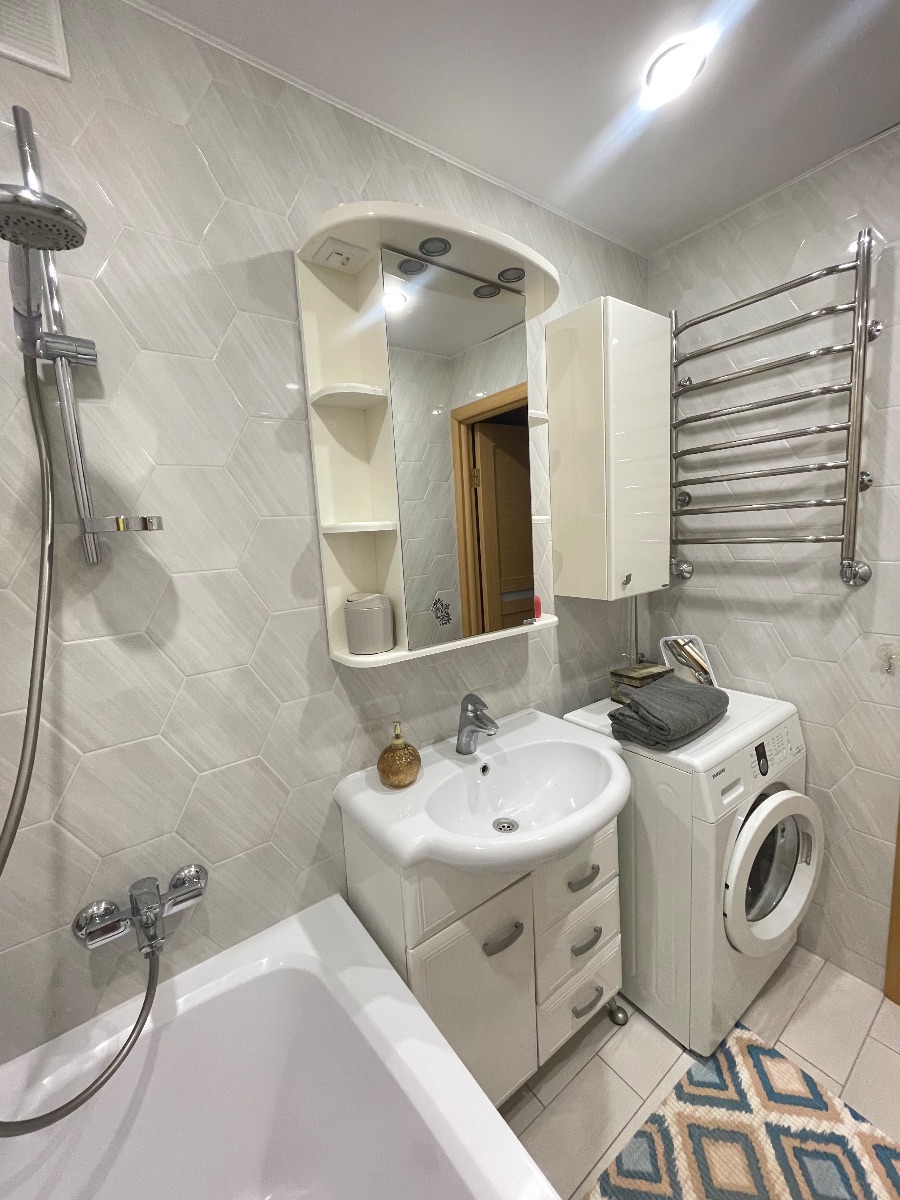 Квартира расположена в удобном районе с развитой инфраструктурой: рядом есть магазины (Prostore, Green, Евроопт и др), круглосуточные аптеки, кондитерские, кофейни, кафе и рестораны, рядом ТЦ Титан, ТЦ Кирмаш, ТЦ Diamond.