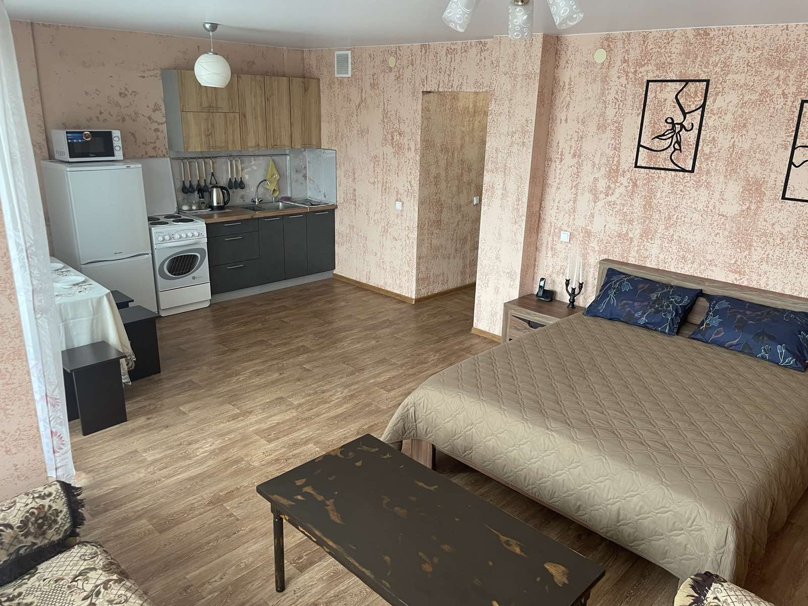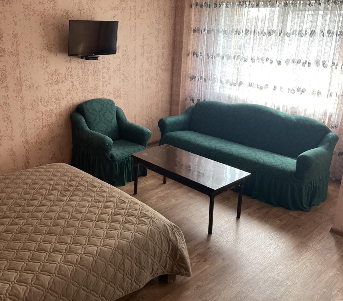 Полностью оборудована всем необходимым для комфортного отдыха и проживания на часы, сутки: кровать с ортопедическим матрасом и двуспальный диван (спальные места – 2х2), комплекты постельного белья, полотенец, средства гигиены, в наличии вся необходимая мебель, бытовая техника и посуда.