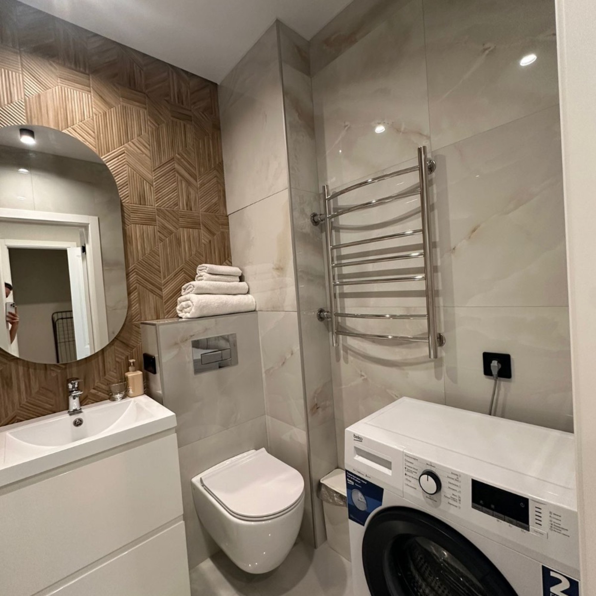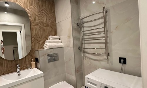 Есть всё необходимое для проживания не более 2 человек. Интернет, стиральная машина, полотенца2 больших, 2 маленьких и 1 под ноги, 2 халата, 2 тапочек, телевизор, свч, холодильник, посудомоечная машина,эл чайник.