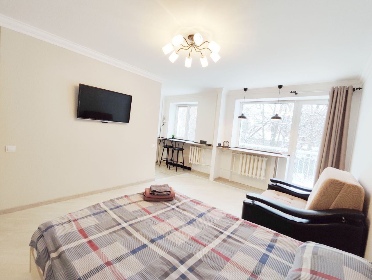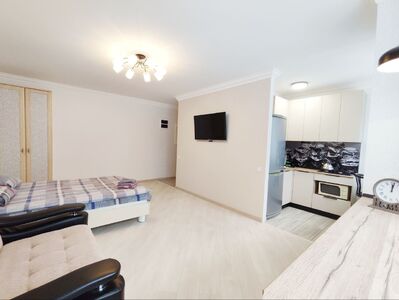 Новая студия в центре. До вокзала и парка 7мин пешком. Все достопримечательности города вокруг вас. Удобное расположение. Парковка у дома.