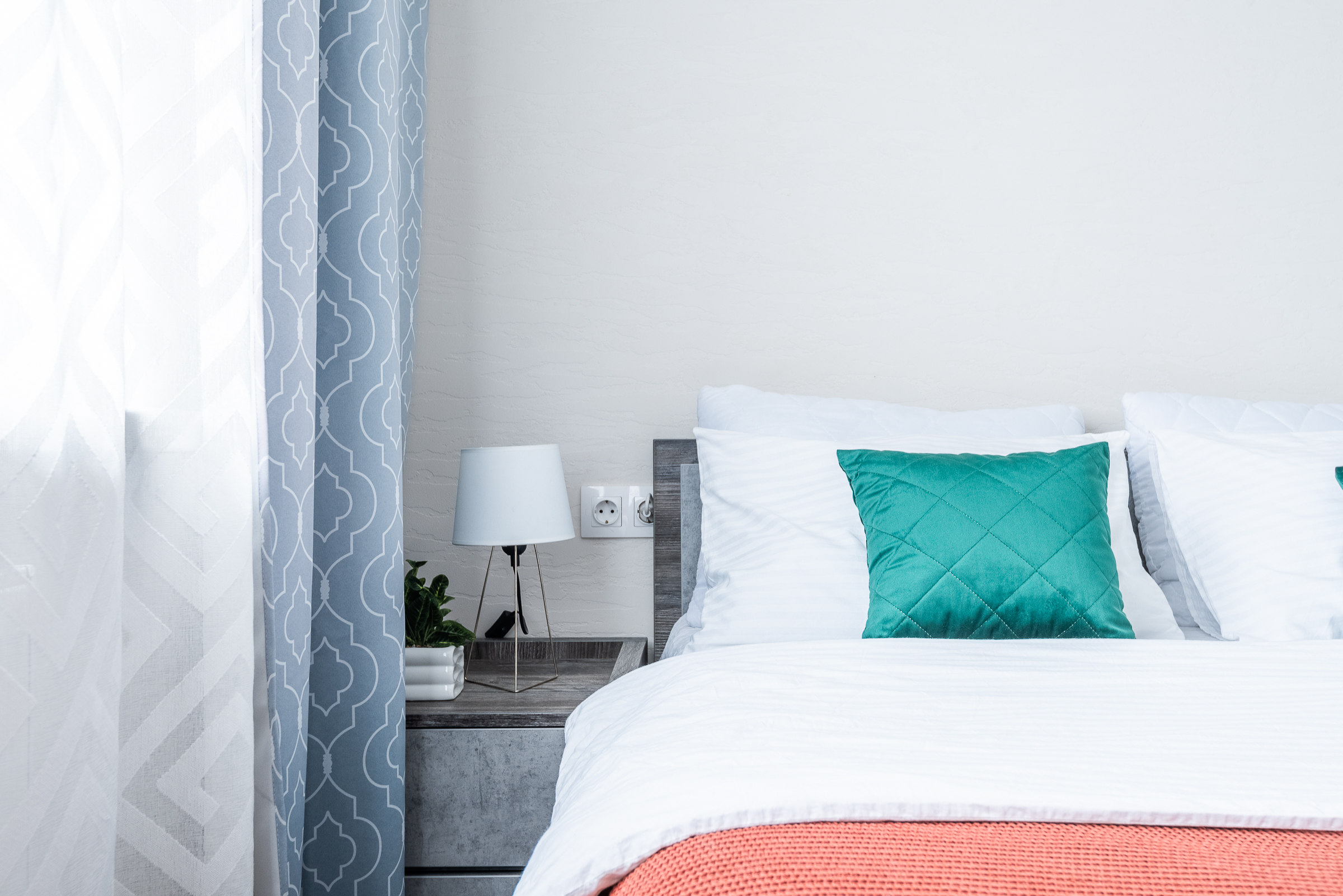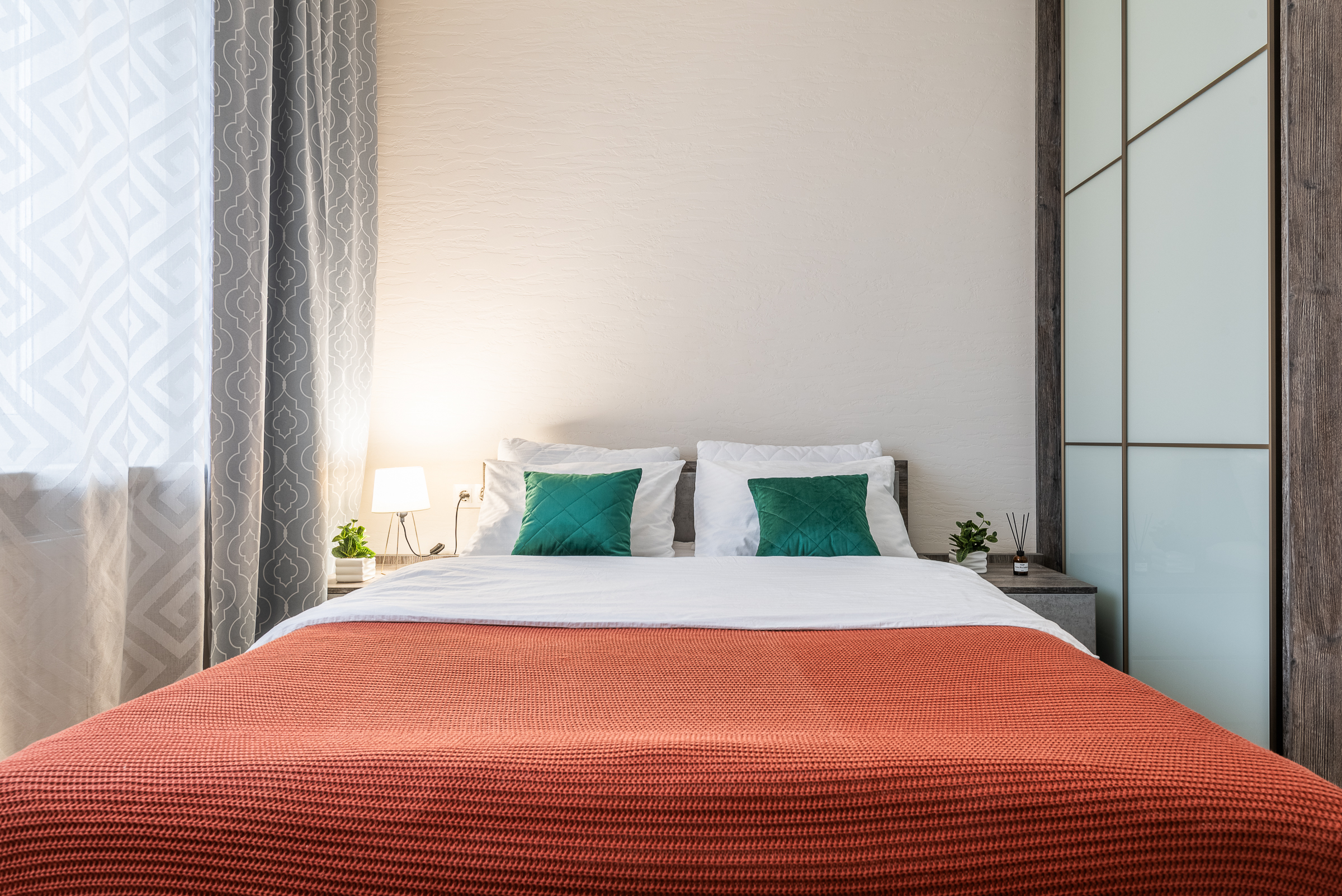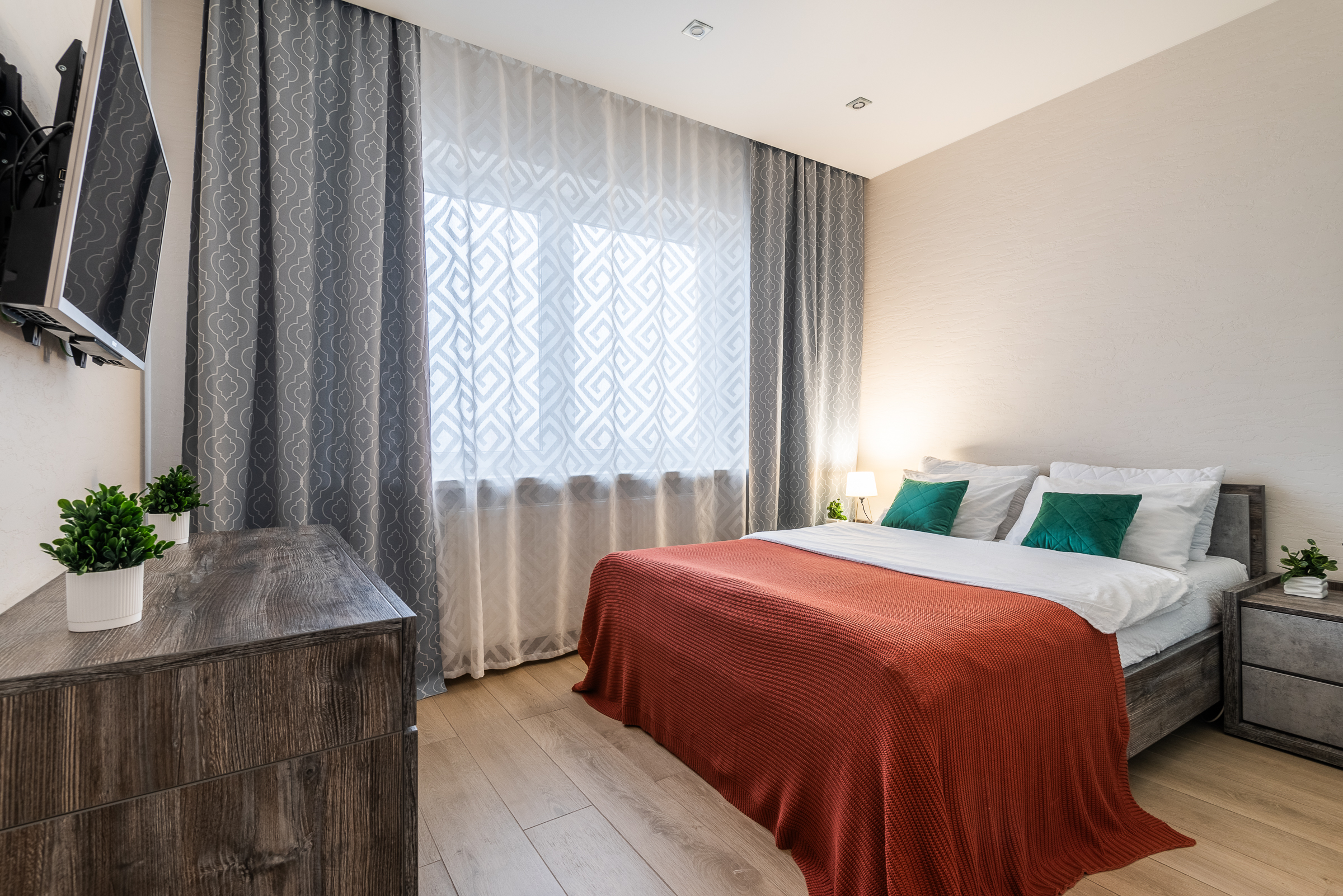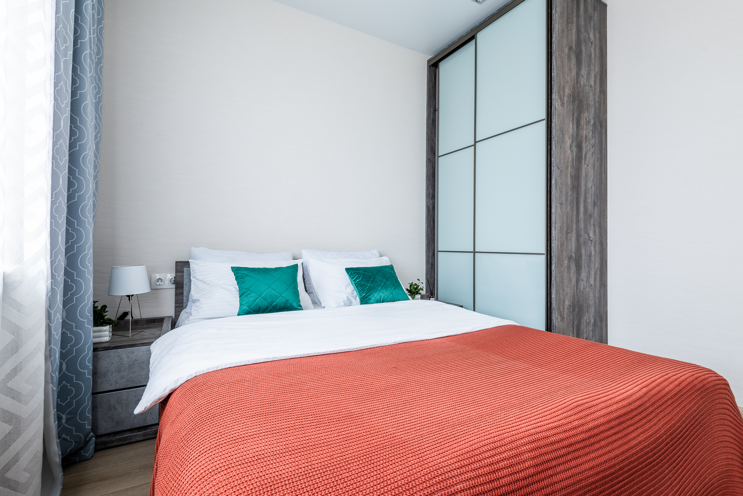 • удобная двуспальная кровать и диван с качественным постельным бельём