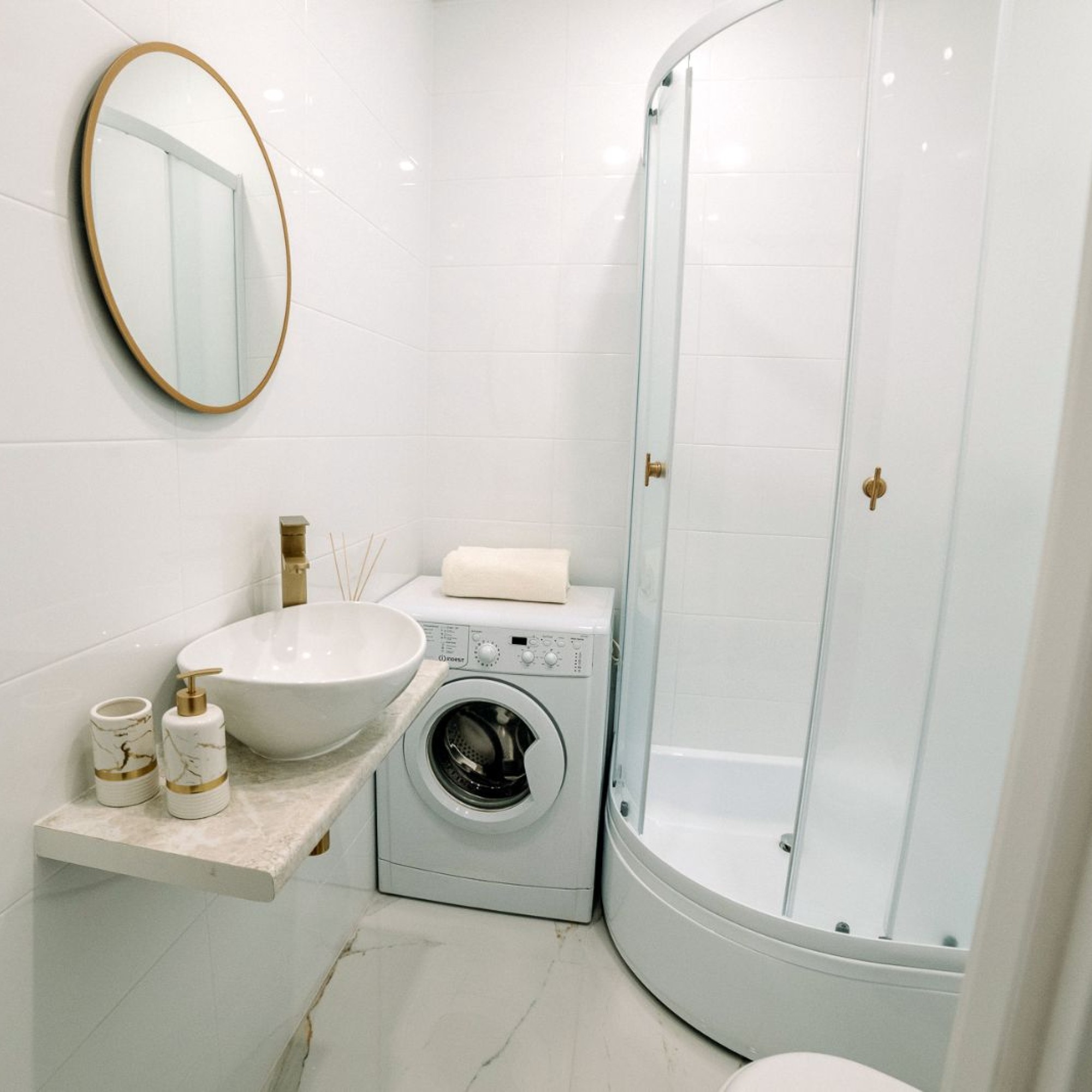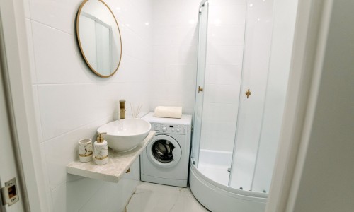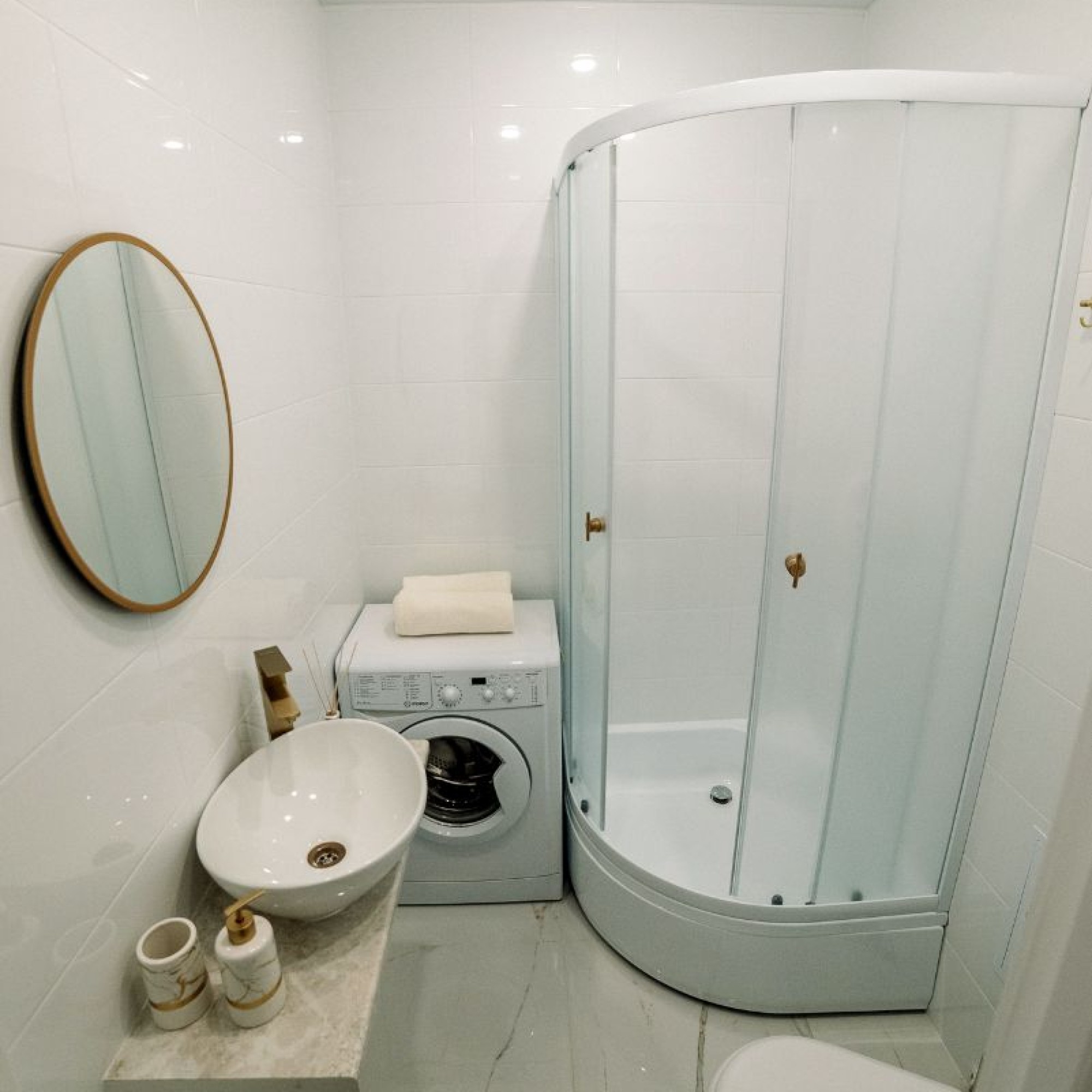 - Вся необходимая бытовая техника (электрический чайник, электрическая варочная поверхность, холодильник, микроволновая печь, стиральная машина, утюг, фен)
