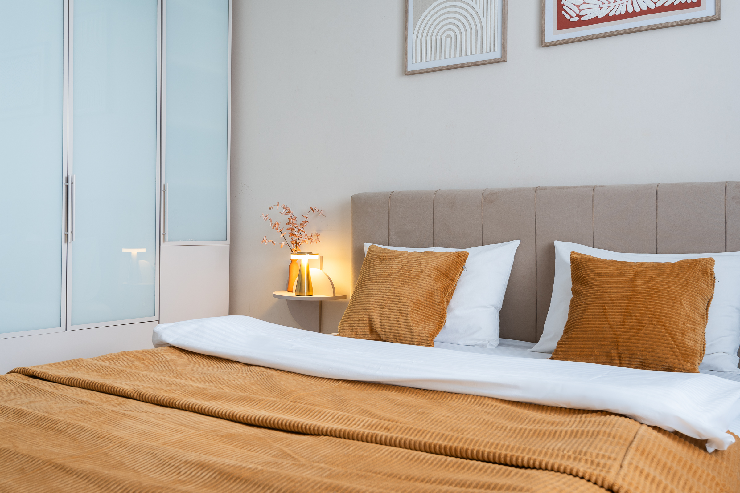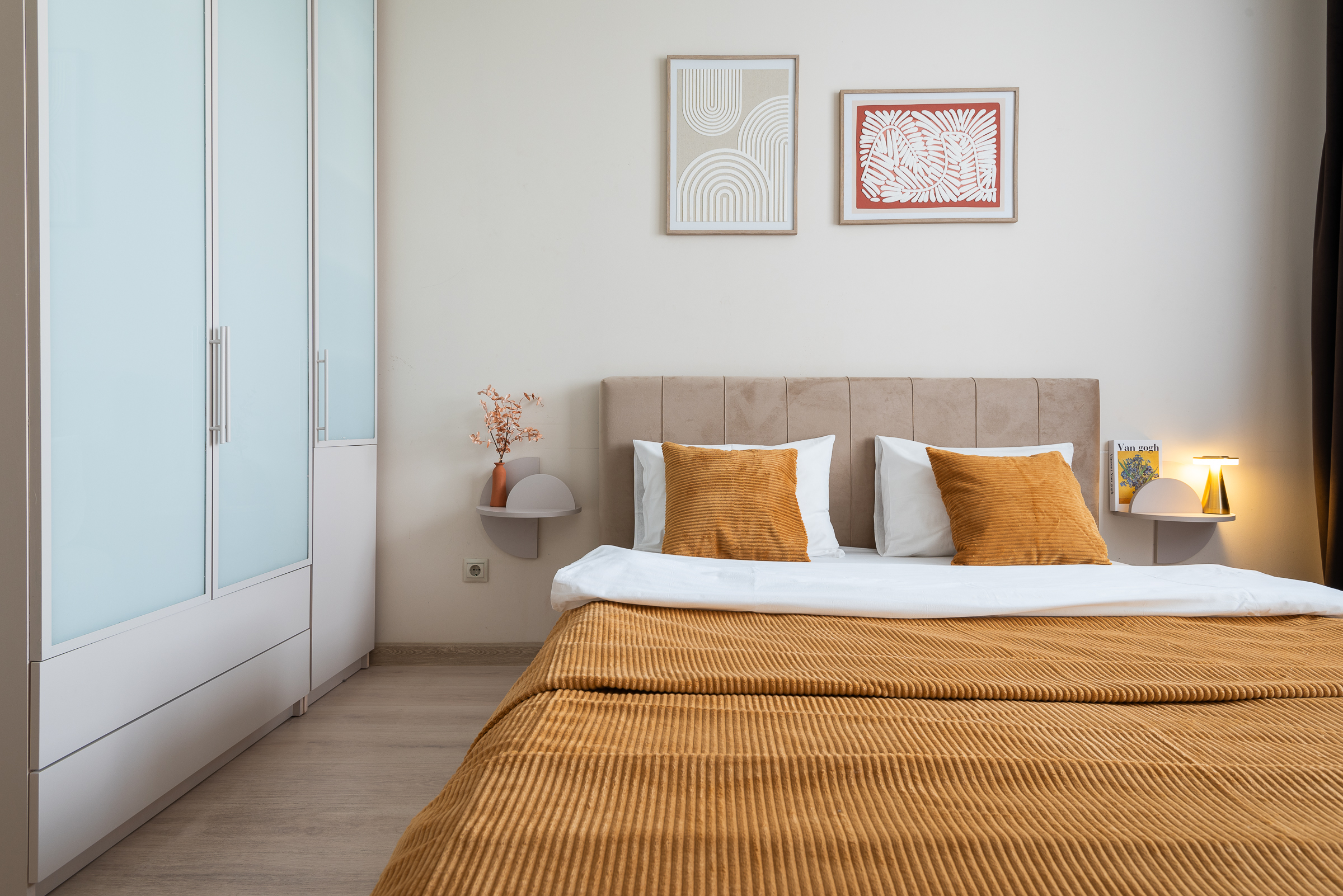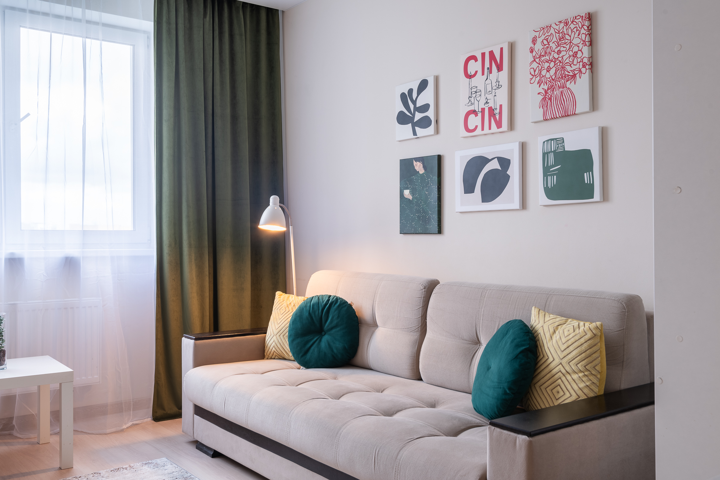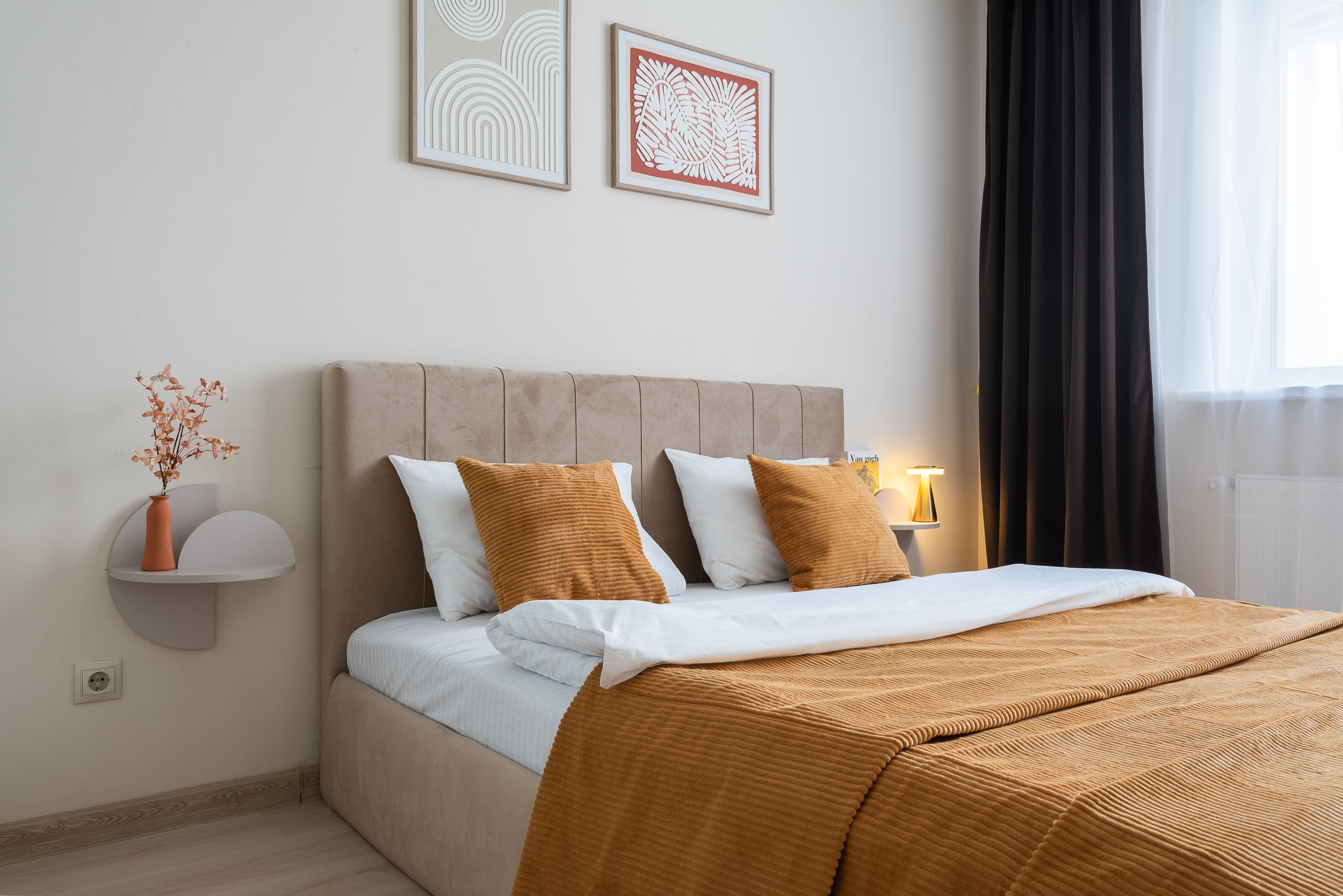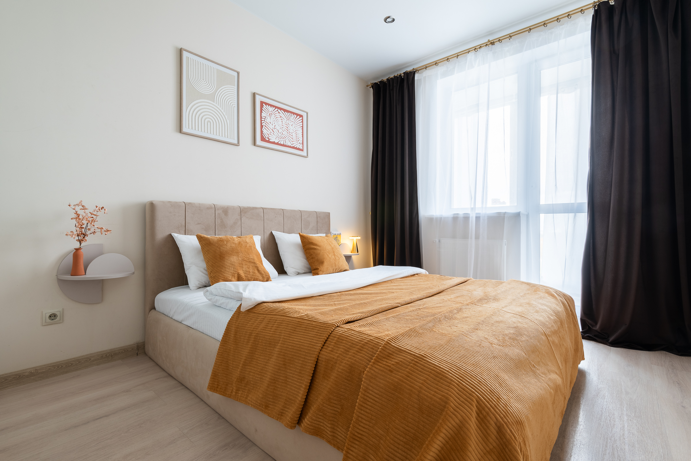 • удобная двуспальная кровать и диван с качественным постельным бельём