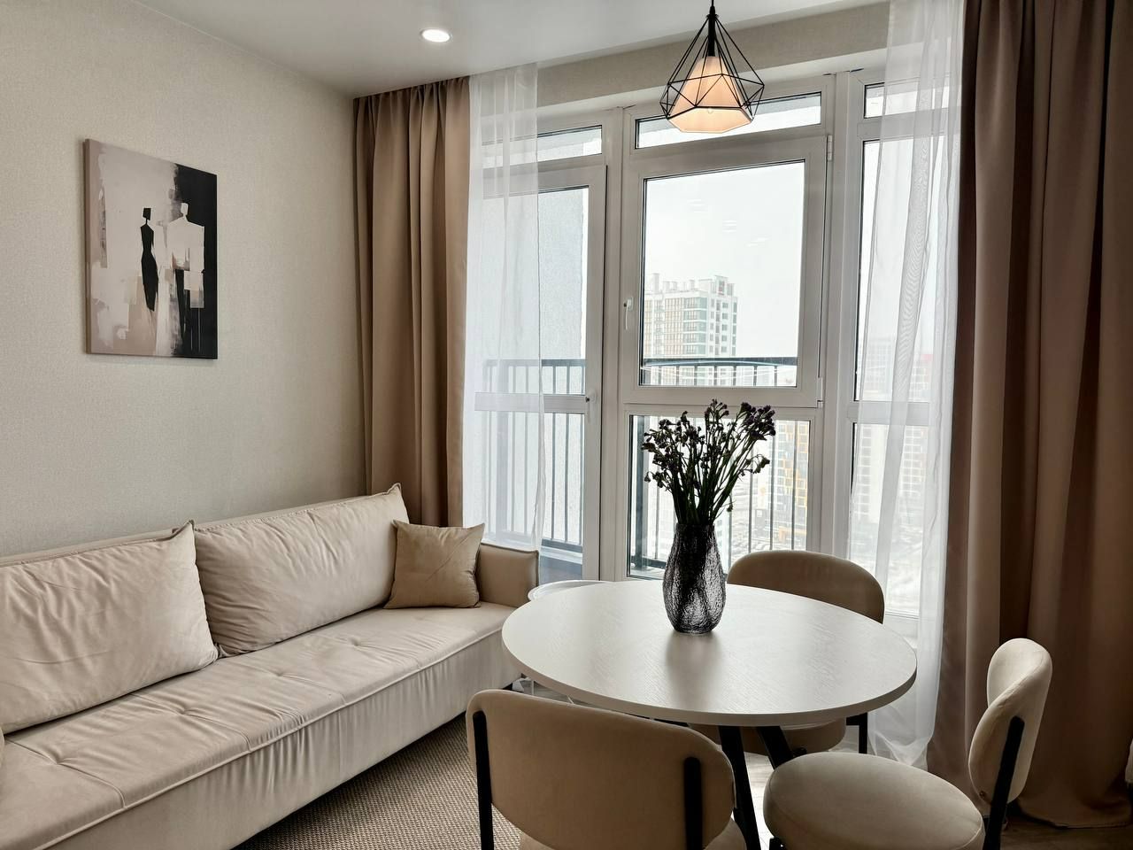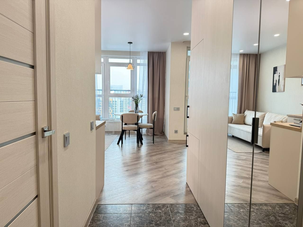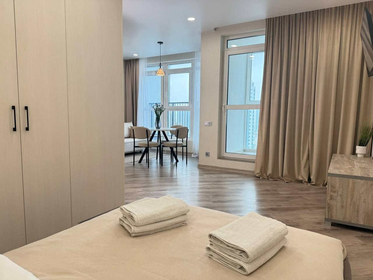 Апартаменты квартира студия (Комфорт+) ждут своих гостей в г. Минске. Квартира расположена в новом доме жилого комплекса ЖК "Minsk world" на 19 этаже с панорамным видом на город.