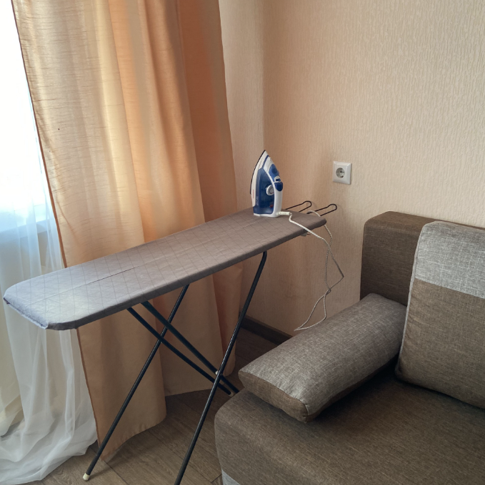 В квартире есть все необходимое для комфортного времяпрепровождения: стиралка, сушилка, фен, утюг и гладильная доска, микроволновка, электрочайник.