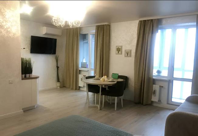 Новая, уютная квартира-студия находится в центре города, развитая инфраструктура и хорошее транспортное сообщение. В квартире есть все, что нужно для комфортного проживания. Двуспальная кровать и диван-кровать. Микроволновая печь, плита, холодильник , стиральная машина, душевая кабина, бойлер, посуда.