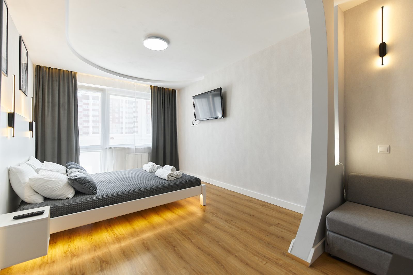 У Вас будет квартира площадью 37 м2, которая готова принять двух человек и гарантировать им приятный и комфортный отдых. Здесь Вы найдете все, что нужно для отличного проживания: большой телевизор, фен, полотенца. Электрочайник, необходимую столовую и кухонную посуду, холодильник, микроволновую печь, утюг, гладильную доску, стиральную машину, сушилку для белья и даже гигиенические принадлежности в дозаторах.