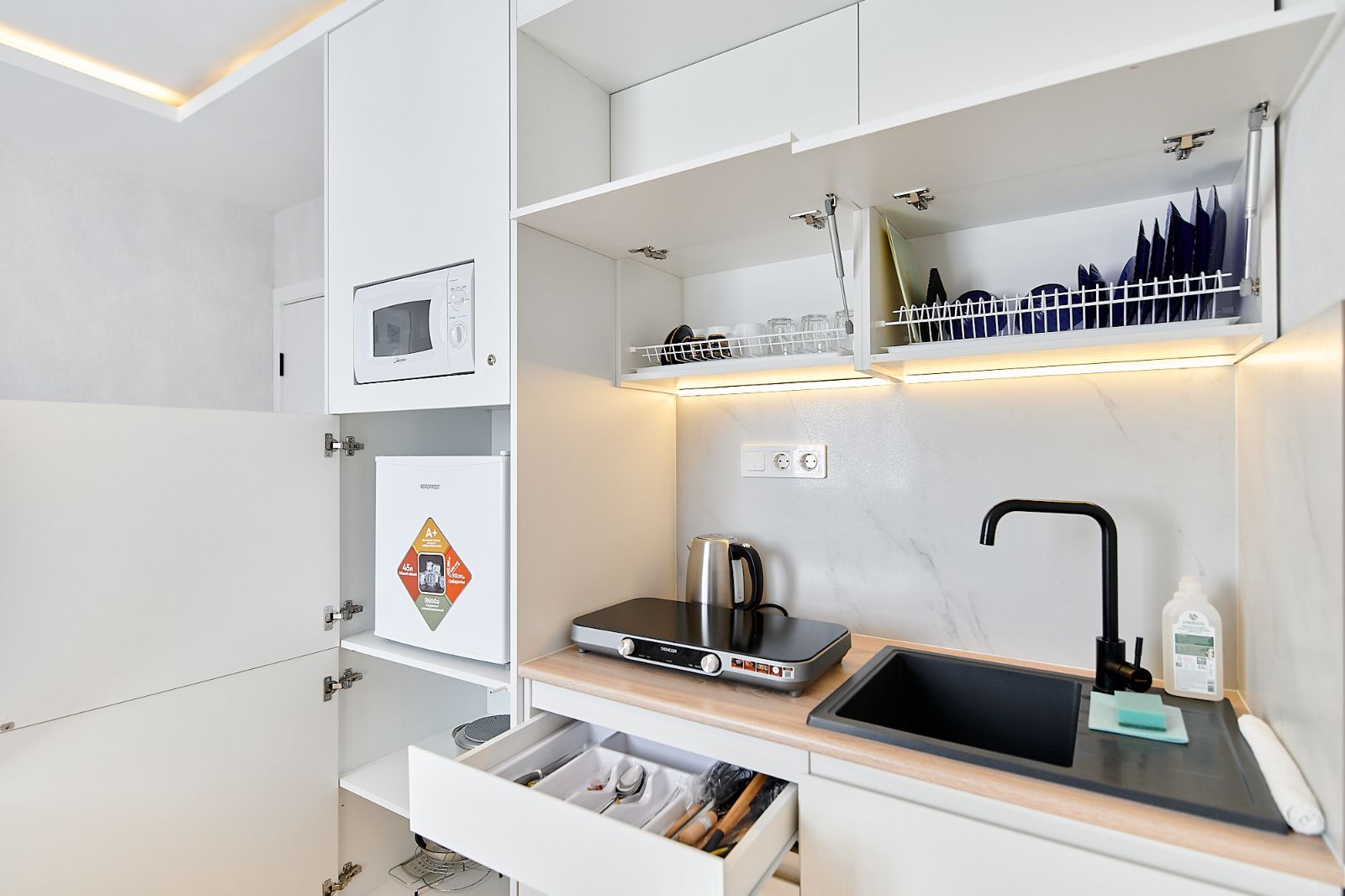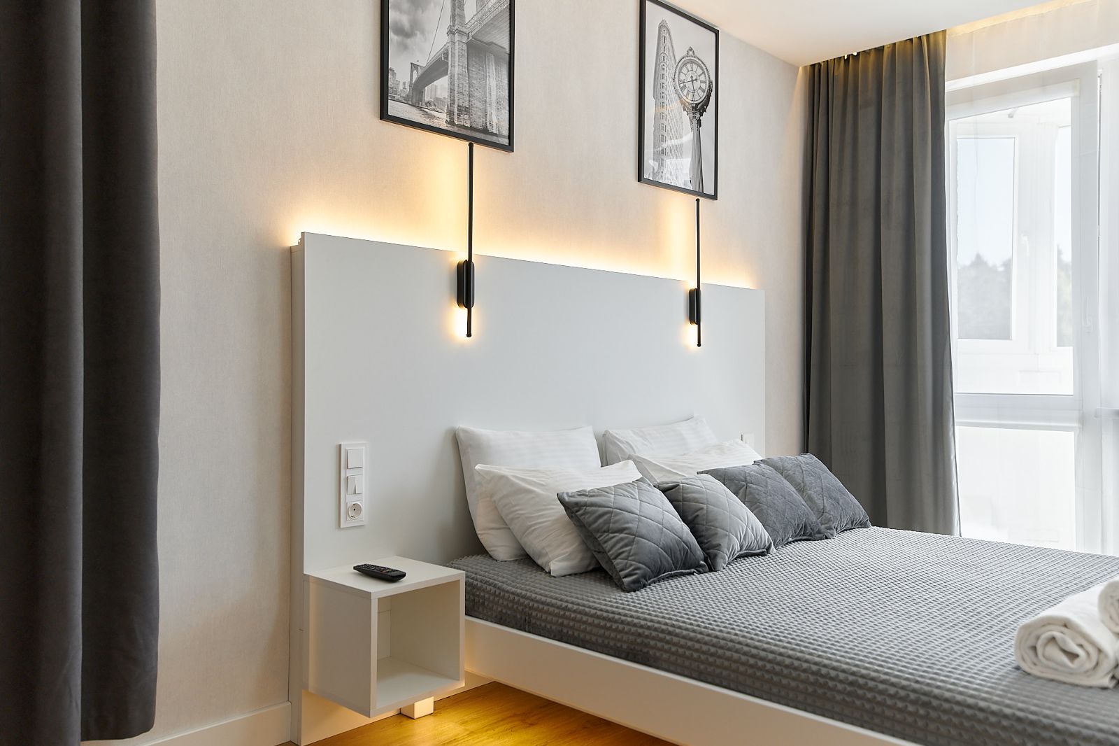 Квартира также оборудована современными пожарными извещателями и датчиками угарного газа. Благодаря этому вы можете быть уверены в полной безопасности своего пребывания.