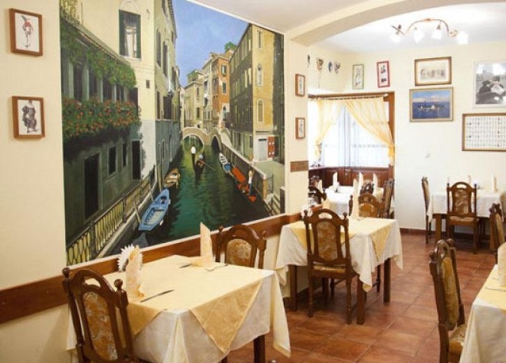 Обеденный зал оформлен в приятных молочно-персиковых тонах и декорирован многочисленными картинами и фотографиями, призванными напоминать посетителям о далекой и прекрасной Венеции. Каждый житель Бреста знает, что именно в «Венеции» готовят лучшую в городе пиццу по традиционным итальянским рецептам в печи на дровах. Кроме того, здесь можно попробовать потрясающе заваренный чай со свежей ароматной выпечкой.