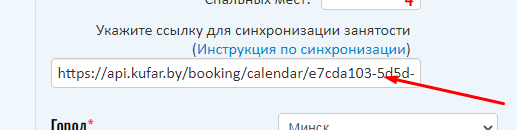 Шаг 6. В строку "Укажите ссылку для синхронизации занятости" вставьте ссылку, которую Вы скопировали с Realty Calendar.